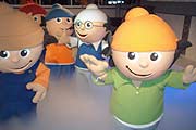 Anton, Berti, Conni, Det, Edi und Fritzchen heißen die nach 40 Jahren immer noch sympathischen Figuren. Anfangs geplant, peinliche Pausen oder Störungen zu überbrücken, wurden sie schnell zur unterhaltsamen Pausenfüllung zwischen den Werbespots eingesetzt. Heute sind sie die wohl dienstältesten Mitarbeiter des ZDF und zugleich ihr Markenzeichen. Es war an der Zeit auch für sie, sich weiter zu entwickeln. Nein, ein weibliches Mainzelmännchen dürfen wir hier 40 Jahre nach dem Erstauftritt der (Spitz-) Brüderschaft noch nicht erwarten, da werden wohl noch einige Jahre vergehen. Doch moderner, zeitgemäßer sollten sie schon werden. Fitter, frecher, vor allem auch schlanker. Im Laufe der Zeit hatte jede der Figuren seinen individuellen Stil entwickelt. Wahre Charaktere die sie sind, erleben sie immer wieder neue Storys, bekamen eigene Lebenswelten. Der schlaue Det ist auch heute noch der schlaue Det, der sich in seiner professoralen Art manchmal nur noch über die anderen Mainzelmännchen wundern kann, und neuen Medien gegenüber fremdelt. Als Traditionalist bezieht er sein Wissen lieber aus Büchern. Berti aber zum Beispiel, der Handwerker, hat in letzter Zeit immer öfter den Schraubenzieher gegen die Computertastatur ausgetauscht. Er hat sich zum Kommunikationsprofit weiterentwickelt und entdeckte für sich die Digitalwelt und alles, was mit Handy, SMS oder Laptop zu tun hat, ist jetzt sein Ding geworden. Mit seiner Fernbedienung beherrscht er alles. Anton ist der lustbetonte Genießer vielleicht ein wenig "prollig", Edi dagegen ist als Schöngeist und als obersensibler Typ das genaue Gegenteil davon. Edis Zimmer ist eine kleine, romantische Oase, aufgeräumt und dekoriert, mediterran und romantisch. Conni ist der Innvoative, der Spontane, Teil der Jugendkultur, als Rapper und Künstler unterwegs, experimentierfreudig, chaotisch, schnell in neue Projekte verwickelt. Entsprechend seine Wohnung, kein besonderer Stil, verschiedene Sperrmüll- Errungenschaften stehen herum. Das Fritzchen ist der aktive, der dynamische Trendsportler, der sich jede Sportart zu eigen macht, sei sie noch so extrem. Bei ihm hängt das Rennrad an der Decke, bei ihm liegen Trimm-Dich-Geräte, hanteln und andere Sporgeräte im Zimmer herum. Schlicht schläft er im Schlafsack auf der Isomatte. Die neuen Mainzelmännchen werden nun grafischer, reduzierter und plakativer, die Farben intensiver, und ganz wichtig, die Figuren bekommen auch neue Klamotten an. Strampler, Latzhosen und Kittelschürzen werden eingetauscht gegen schicke Polohemden, Pullunder und Jeans. Bei Friseur waren sie auch, Ergebnis sind schicke, wuschelige Schnitte. Zum Jubiläum nun wurden die "neuen" Mainzelmännchen von Barbara Schöneberger und ZDF Werbechef Hans-Joachim Strauch den Münchnern vorgestellt, und begaben sich schwungvoll in den von künstlichem Nebel umwaberten Pool der Partylocation, um dem anwesenden Publikum ihre stimmungsvolle Adventsbalade "Christmas Time" tänzerisch vorzuführen, mit der sie auf ihr neues, Anfang 2004 bei der BMG erscheinendes Album einstimmten. Das war immerhin mehr als das berühmte "Gud'n aamd", das schon immer Wolf Gerlach, der Vater der kleinen Männchen, synchronisiert hat. Vor Münchner Publikum hielten die kleinen Kerle ausdauernd und schwungvoll fast bis zum erbrechen auf der Tanzfläche durch, wenngleich auch die Insassen der Figuren sichtlich schwächelnd anschließend zurück in die Umkleiden geleitet werden mussten. Der Trockeneis-Nebel war wohl ein wenig zu stark an diesem Abend... Da spülten sich die geladenen Gäste doch gleich wieder das Kratzen aus dem Hals mit den Drinks herunter, genossen die Kanappés und Stücke der riesigen Mainzelmännchen Torte, die Barbara Schöneberger mit dem ZDF Werbechef Hans-Joachim Strauch für die Gäste teilte. Amüsant die zwischendurch eingespielten Uraalt Clips der Mainzelmännchen, nicht nur wegen der dazu passenden Spots aus der Zeit, als die Mainzelmännchen das Laufen begannen. Und wer nostalgisch veranlagt war, dem bot sich eine kleine Ausstellung von Mainzelmännchen Werbemitteln der letzten 40 Jahre, denn auch als Merchandising-Artikel waren die kleinen Kerlchen überaus erfolgreich, und für den Sender wohl auch profitabel. |