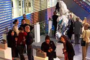 Die Künstlerin, die unter ihrem Künstlernamen Karin LaKar zeichnet, lässt ihre Erfahrungen der Bildhauerei und der Malerei in einem unverkennbaren Stil münden, der sich die Formsprache unterschiedlichster Materialien zu Nutze macht. "Wir wollen unser Haus auf unterschiedlichste Art bespielen und auf vielfältige Interessen eingehen, so Ulrich Kowalewski, Direktor Mercedes-Benz München. "Diese Ausstellung, die heute mit einer Vernissage für geladene Gäste und Kunden beginnt, ist ein weiteres Element in unserem für 2004 geplanten Veranstaltungsprogramm.". Das begleitende Musikkonzept wurde von Thomas Fuchsberger zusammengestell. Die begleitenden Filmmusiken in Richtung Ethno-Pop stammen aus der Dokumentationsreihe "Terra Australis". Anläßlich der Ausstellungseröffnung am 4. Februar 2004 waren rund 550 Gäste aus Wirtschaft und Gesellschaft geladen. Der Kunsthistoriker und Gastredner des Abends, Dr. Horst G. Ludwig, fasst die Ausstellung folgendermaßen zusammen: In Anlehnung an die Metamorphosen von Ovid (43 v. Chr.-18 n.Chr.) entstand der Titel der Ausstellung. Die Gestalt-Wandlungen oder Gestalt-Veränderungen, was Metamorphosen in der Übersetzung heißt, sind für Karin LaKar das Thema ihrer Kunst. Der Mensch als Erscheinung und Illusion zugleich. Er nimmt teil an den großen Metamorphosen der Welt. Die Künstlerin greift selbst das Motiv der Verwandlungen nur auf, weil es ohnehin in der Welt ist. So ist ihr Thema die Wandelbarkeit alles Seienden, was Heraklit aus Ephesos mit dem berühmten Satz umschreibt "Panta rhei" (Alles fließt). Die Ausstellung präsentiert sechs Werkgruppen, Draht-Papier Figuren, ein "Material Bild", Metall Bilder, "Ausschnitte", die große Holz-Skulptur "Umdrehung" sowie Skulpturen aus Acryl-Gips und aus Bronze, bei denen mehrfach das Motiv "Mensch und Krokodil" auftaucht. Die Frau und die Panzerechse sind extreme Gegensätze unddennoch sucht die Frau Schutz bei der Echse - trotz Gefahren. Neben einer kleineren Version in Bronze hat die Künstlerin das Motiv leicht abgewandelt in Acryl Gips wiederholt. Weitere Bronzen in der Ausstellung zeigen die große Bandbreite im Schaffen von Karen LaKar der letzten neun Jahre. Nach Studium Modedesign an der Berliner Akademie in den siebziger Jahren mit anschließendem Studium Theater-Kostüm-Design begann Karin Müller-Wohlfahrt - Karen LaKar ihre freiberufliche Tätigkeit. Später folgt eine Ausbildung als Bildhauerin bei Gisela Drescher in München. Die Künstlerin arbeitet vielseitig innovativ und eigenständig in Bronze, Holz, Metall und als Malerin. Für die Öffentlichkeit zugänglich ist die Ausstellung kostenlos von Donnerstag, 5. Februar bis Donerstag, 4. März 2004 im Mercedes Benz-Center, Arnulfstr. 61, Montag bis Freitag von 8 bis 20 Uhr, am Samstag von 9 bis 20 Uhr sowie Sonntag und Feiertag von 10 bis 20 Uhr. Parkplätze sind im Hause vorhanden. Das sehens- und ambientemässig erlebenswerte dem Center angeschlossene Restaurant Daimlers sorgt für das leibliche Wohl. Das "Daimlers" stellen wir Ihnen kommende Woche vor. Impressionen von der Eröffnung der Ausstellung "Metamorphosen" (mehr) |