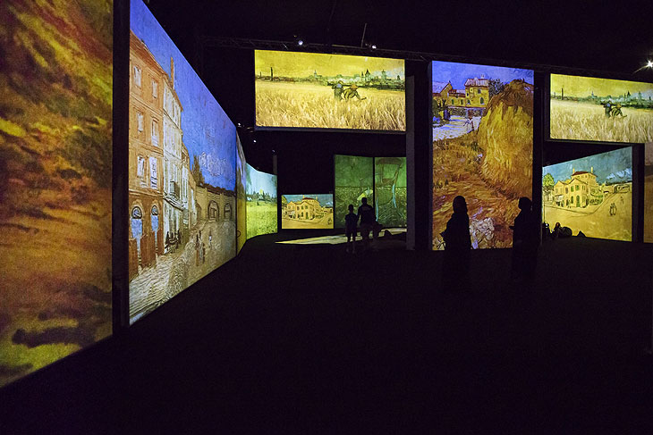 So werden Wände, Säulen, Decke und Boden des eigens konzipierten Ausstellungsraums bewusst miteinbezogen, um eine ganzheitliche Erfahrung zu schaffen. Die multimediale Wanderausstellung „Van Gogh Alive“ in München macht auf rund 1.200 qm die Bilderwelt des Künstlers begehbar. Über 3000 Bilder werden von eindringlicher, klassischer Musik begleitet und verwandeln den Ausstellungsraum in ein Gesamtkunstwerk.