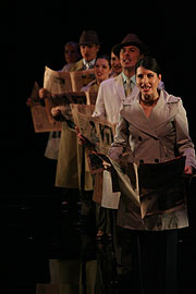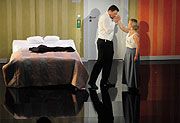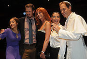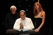 „Herr Fuchsberger, bitte hierher, einen Blick in die Mitte. Und der Papst auch!“ Solche Anweisungen gibt es nicht im wahren Leben, sondern nur beim Fototermin nach der Premiere von „In Nomine Patris“. „Der Papst“ - das ist in diesem Fall Musicaldarsteller Dean Welterlen. Er muss für den Komponisten und Autoren Bernd Stromberger als Sprachrohr herhalten für dessen Kritik an buchstäblich Gott und der Welt. „Hören Sie die Beichte der Päpste“ wirbt das Deutsche Theater für die Welturaufführung des Stückes an der neuen Spielstätte Fröttmaning (das Stammhaus wird in den nächsten Jahren komplett renoviert). So einiges stellt sich der Zuschauer vor, wenn von einer „Jugendliebe des Papstes“ erzählt werden soll. Eine Art „Dornenvögel“-Story erwartet man und wird im ersten Akt zu diesem Thema auch reichlich zufrieden gestellt: Ein Papst (Dean Welterlen), der sich zwischen Kirchenkarriere und Liebe entscheiden muss. Hin- und hergerissen zwischen seinem Glauben und seiner Geliebten aus Jugendtagen (Conny Zenz) und der gemeinsamen Tochter (Jasmina Sakr). Alle spielen mit sehr guten Stimmen und viel Einsatz (die Hauptdarsteller sind in großen Musicals bühnenerprobt, wie z.B. Patrick Stanke www.patrickstanke.de als Forscher Dr. Sand).