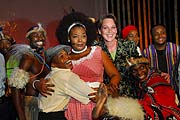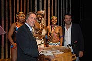 Mit dem Deutschen Theater kommen die Zuschauer ganz schön in der Weltgeschichte rum: kürzlich erst ging‘s in die Karibik und kaum drei Wochen später heißt es „ab nach Südafrika“! „Africa Umoja“ nennt sich die Show, über die die britische Presse jubelte: „Genug Energie, um London zu beleuchten!“. Nun, auch in München werden bis zum 7. Oktober 2007 jeden Abend zahlreiche Glühbirnen angehen, denn die knapp 40 Tänzer und Musiker wirbeln über die Bühne als gäbe es kein Morgen. Hier sind die quirligsten Füße der Stadt am Werk! Wurden beim Vorgänger-Stück „Carmen Cubana“ allabendlich die längsten und schönsten Beine dem Münchner Publikum präsentiert, so kommt bei „Africa Umoja“ eher die muskulöse, kompaktere Variante zum Einsatz. Keine Modelfiguren, sondern Frauen und Männer, wie man sie in jeder Stadt der Welt finden könnte, eben nicht gertenschlank, sondern offensichtlich gut genährt. Es ist gerade diese Authentizität, auf die „Africa Umoja“ Wert legt, wenn in der 2 1/2-stündigen Vorstellung die Geschichte der Menschen in Südafrika durch die unterschiedlichen Musikstile erzählt wird. Und dabei wird tüchtig getrommelt! „Ganz schön laut hier in der vierten Reihe“ weiß deshalb auch Premierengast und Swinglegende Hugo Strasser zu berichten. „Aber die Stimmen sind fantastisch!“ Bis auf einen Song und die verbindenden Moderationen wird in afrikanischen Dialekten gesungen. Da kann Otto Normalzuschauer natürlich nichts verstehen. „Ich übe gerade die korrekte Betonung“ scherzt deshalb auch „Marienhof“-Liebling Michael Jäger und liest im Foyer die Besetzungsliste vor. Für europäische Ohren böhmische Dörfer... Schöne Geste: die beiden neuen Geschäftsführer lassen es sich nicht nehmen und bedanken sich am Ende der Vorstellung mit Sonnenblumen bei „ihren“ Künstlern. Temperament und furiose Tanzschritte lassen einen am Ende der Show ziemlich erschöpft im Theatersessel zurück. Und der Trommelrhythmus hält sich noch lange im Ohr... Bei der Premiere entdeckt (übersichtliche VIP-Liste trotz Ferienende, woran lag‘s?): Bürgermeisterin Christine Strobl, Moderatorin Ramona Leiß, die Schauspieler Sigmar Solbach und Joachim Raaf (Held der Erfolgs-Telenovela „Rote Rosen“), das Musiker-Ehepaar Peter Horton und Slava Kantcheff. Gaby Hildenbrandt „100.000 Volt-Vehemenz... mit einer Präzision, die an die harte Schule des Broadway erinnert....“ „Die Show ist kraftvoller, lauter, bunter, schneller, praller....“ „Ein Fegefeuer an Energie, Kraft und Schönheit“ „Sie tanzen wie Dämonen, singen wie Engel und trommeln wie besessene Zauberer.“ Aktuelle Aufführungen im Deutsches Theater (weiter) Deutsches Theater Spielzeiten: Vorstellungen: Di - Sa 20 Uhr, Sa auch 15 Uhr, Spielfrei: Mo Tickets von € 19,- bis € 64,- Vorstellungsdauer: 2h 20min. Infos und Ticketbuchung auch unter www.deutsches-theater.de |