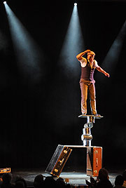 Das Ensemble: Die lonely husBand Moderation, Musikcomedy Ihre Moderationen kommen als blumige Plaudereien daher und entgleisen kunstvoll ins Absurde. Das wohl schrägste Duo seit Matthau und Lemmon lässt die Anderen glänzen und badet dabei in Selbstironie. Mit ihrer unnachahmlichen Art haben die beiden Chaos-Conferenciers in den letzten 20 Jahren fast alle deutschsprachigen Varieté-Bühnen im Sturm genommen und sich mit praller Situationskomik und virtuos musikalischem Witz in die Herzen der Zuschauer geblödelt. Jon Young Vertical Pole- Jon Young 25 Jahre, Deutschland Monsieur Chapeau Rola Rola. Jean Pierre Ehrenreich 30 Jahre, Deutschland Der afrikanisch stämmige Künstler Monsieur Chapeau arbeitet sich auf artistisch höchstem Niveau Stück für Stück in die Höhe und behält auf seinen wackligen Rollen und Brettern dennoch immer die Ruhe. Durch seine Ausstrahlung und die Musik holt er den Geist des kubanischen Buena Vista Social Club auf die Bühne und spielt sich in die Herzen seines Publikums. Mustache Brothers Comedy Partnerakrobatik Zwei Brüder im Geiste, die vor allem die Liebe zu Schnurrbärten & der Bühne teilen: Wenn Bruno Fratani & Nelson Cavalcante aus Brasilien ins Scheinwerferlicht treten, heben sich die Mundwinkel fast wie von selbst. Ein Tisch, viel Energie, ein wenig Slapstick und noch mehr akrobatisches Können so spielen die zwei Cascadeure einen Act wie aus dem Bilderbuch, gefühlt aus der kultigen Feder von Dick & Doof. Mit einem Augenzwinkern und einer großen Portion Charme locken die Mustache Brothers auch aus dem größten Empathisten ein angenehm wohliges Gefühl der Schadenfreude. Sebastian Matt Visual Comedy Sebastian Matts Comedy ist von eigener Klasse. Seine skurrilen Figuren sind durchgeknallt, liebenswert und einzigartig. In der Show „Die Spassmacher“ zeigt er uns einen Zauberer, der mit allerlei Überraschungen aufwarten kann und den am besten gekleideten Kellner des Abends, dem auf der Bühne auf keinen Fall zu warm werden wird. Passe Pieds Trapez-Artistik Anstatt zwei hübscher Mädchen auf dem Trapez, die so tun, als würde alles perfekt vonstattengehen, zeigen uns Yolaine und Eva, wie es wirklich ist, als Duo auf dem Trapez zu arbeiten. Wie bei einem alten Ehepaar, bei dem die Liebe schon längst verflogen ist, gibt es keine Scheu mehr zu zeigen, wie sehr einem der andere gerade auf die Nerven geht. Artistische Höchstleistungen, gepaart mit treffsicherem Humor - das sind Passe-Pieds. Irina & Evgeniy Partnerakrobatik Vor Jahren hatte Irina Bondarenko ihren ersten Auftritt auf unserer Bühne mit einem Solo Equilibristik Act, dieses Mal hat sie Ehemann Evgeniy mitgebracht. Beide vollführen eine kraftvolle Partnerakrobatik: Sie findet ihre zweite Hälfte. Er findet in ihr sein Alles. Es passiert plötzlich ein Blick, ein Lächeln: Der Beginn einer Liebe, die so einmalig ist, wie jede andere… Eine wunderbare Geschichte, erzählt durch die Plastik der Körper, durch die Sehnsucht, die sich nach mehr sehnt und durch die Harmonie der Verschmelzung. Eine wahre Love-Story. Showtime ist dienstags bis donnerstags um 20 Uhr, freitags und samstags um 18 und 21.15 Uhr, sonn- und feiertags um 15 und 18.30 Uhr. GOP Tickethotline (089) 210 288 444 oder unter www.variete.de!