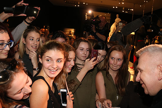 ![]() Schülerinnen der Modeschule Hallein waren begeistert über den für sie überraschenden Besuch von Jean Paul Gaultier in der Ausstellung ![]() "Ausstellung „Jean Paul Gaultier. From the Sidewalk to the Catwalk“ Öffnungszeiten Internet www.hypo-kunsthalle.de