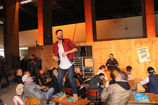 Frisch wars, denn noch sind viele der Fenster nicht eingesetzt im Werk7-Theater, das aus einer ehemaligen Kartoffel-Lagerhalle im Werksviertel-München entsteht. Wem das nichts sagt: unter Kultfabrik oder noch früher Kunstpark-Ost ist das Gelände der ehemaligen Pfanni-Fabrik sich der Meisten noch bekannt. Nebenan die Tonhalle und das Technikum, ums Eck dei Nachtkantine, schräg gegenüber entsteht die Philharmonie, doch für Musicals hat sich hier Stage Entertainment angesiedelt mit seiner ersten festen Bühne in München. Gut also, dass es auch ein paar Heizstrahler für die Presse gab, die hier - zwei Monate vor der Premiere - neben den später dann zu hörenden heißen Raps und Grooves einheizen. Das Kreativteam und der Regisseur (Christoph Drewitz) hatten am 15.11.2017 erste Einblicke in das neue Musical FACK JU GÖHTE SE MJUSICÄL gegeben, das am 21. Januar 2018 im WERK7 Theater im Werksviertel München Premiere feiert.