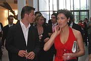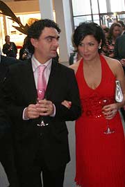 Den Besuch hatten sich einige Münchner groß in ihren Terminkalender markiert: das Traumpaar der Oper Anna Netrebko und Rolando Villazón präsentierte in München die DVD ihrer umjubelten Salzburger Festspielaufführung von Willy Deckers „La Traviata“ Inszenierung aus dem Jahr 2005. Schauplatz der Galavorführung wurde der weltberühmte Braunfels-Bau, die Pinakothek der Moderne, bei der am Samstag, 20. Mai 2006 ab 20.00 Uhr die geladenen Gäste und in Anwesenheit der klassischen Superstars Netrebko und Villazón die schönsten Ausschnitte aus Verdis berühmter Oper gezeigt wurden. Schon auf dem roten Teppich hatten zahlreiche Münchner Fans Gelegenheit, ihren Idol zumindest einmal nahe zu sein. Zu den dreihundert Glücklichen, die dann im Inneren der Rotunde zunächst in gebührlichem Abstand Netrebko und Villazón betrachten durften, zählten Prof. Peter Ruzicka (Künstlerischer Leiter der Salzburger Festspiele), Pinakotheken Architekt Stefan Braunfels, Elisabeth Prinzessin von Sachsen Weimar-Eisenach, Prinz zu Salm Salm, Casimir Graf von Maltzan (TST Biometrics), Gräfin Stefanie von Maltzan, Verleger Florian Langenscheid, Escada Vorstand Frank Rheinboldt, Mode-Designerin Susanne Wiebe, Richard Gaul (Leiter für Konzernkommunikation und Politik bei der BMW AG), Regine Sixt, Unitel-Classica Geschäftsführer Jan Mojto, die Gastronomen Doris und Roland Kuffler, Werner E. Klatten (Geschäftsführer EM.TV), und Universal Music Chef Frank Brinkmann, der später am Abend den beiden Opernstars noch eine Platin-CD für mehr als 200.000 verkaufte "La Traviata" CD's überreichen durfte. Auf die Frage, ob sie schon schon ans Essen denke vernahm man sie mit sonorem „R“ „Burrrger King, yes...“, um dann Lacher zu ernten mit der Ergänzung „I wanted to be funny“. So, so, man unterhielt sich gut mit dem Ruinart Champagner im Glas, durfte zusehen, wie TV-Team kurze Statements einfingen, immer schön von der omnipräsenten Security auf Respektabstand gehalten. Überall gezückte Handys und Diggicams, ein Souvenir vom Anblick wollte man doch gerne mit nach Hause tragen.