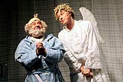 High-Tech-Schutzengels fürs 21. Jahrhundert, verfügt über Ultraschall-Navigator, Düsentriebwerk, Infrarot-Sensor, Astronautenuhr… er ist dem technischen Fortschritt auf Erden angepasst. So hatte ihn Petrus in Auf-trag gegeben. Nicht vorgesehen war allerdings, dass der Neuankömmling statt im Rüschenhemd in einer Ledermontur auftaucht und statt der Gold-löckchen eine rote Strähne im pechschwarzen Haar trägt. So vertraut Petrus ihm zwar als ersten Test die achtjährige Lisa an, deren schulische Leistungen Anlass zur Sorge geben, schickt aber gleichzeitig den übereifrigen Streberengel Gabriel zur Überwachung hinterher. So entwickelt sich eine Geschichte über Schule, Freundschaft und Tierliebe, himmlisch frech, voll kindlicher Anarchie, witzig und spannend, wie Kinder sie lieben: ein augenzwinkernd respektloses Märchen auf der Höhe der Zeit, das die kleinen Zuschauer mit einbezieht und an dem auch die Erwachsenen ihre Freude haben werden. Mit Miriam Smolka, Ulla Wagener, Dieter Henkel, Otto Beckmann und Thomas Stegherr
