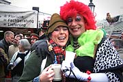 Der Viktualienmarkt ist am Faschingsdienstag bereits ab 7 Uhr in der Früh Treffpunkt der (Rosenmontagparty-) Spätheimkehrer. Neben "herkömmlichen" kostümierten Narrinnen und Narren sind eine besondere Attraktion des Faschingsdienstags auf dem Viktualienmarktes zahlreiche phantasievoll aufwändig kostümierte Drags, die nicht nur aus dem nahegelegenen Glockenbachviertel, sondern teils aus ganz Europa extra zu diesem fotogenen Event anreisen. An vielen Ständen werden durch die Markthändlerinnen und Markthändler feste und flüssige Schmankerl angeboten. Für das leibliche Wohl ist gesorgt. Auch andere Lokale des Viertels stellen mobile Bars auf das Trottoir, oder schänken gleich vom Fenster an die Durstenden aus. Der Tanz der Marktfrauen oder auch "Marktweiber" gehört seit vielen Jahren zum Höhepunkt des Faschignstreibens in der Landeshauptstadt München. Bereits vor über 100 Jahren tanzen die Marktfrauen am Faschingsdienstag am Viktualienmarkt. Früher tanzten sie lediglich vor ihren eigenen Ständen zu Faschingsmusik, die damals noch aus Radios kam. So wurde schon mal eine Polka mit einer sonst "grantelnden" Nachbarin getanzt, mit der man umterm jahr kaum ein Wort gewechselt hatte. Aus einem echten Geheimtipp während der 50-er und 60er Jahre wurde so eine Traditionsveranstaltung. Kam die Musik früher noch aus den Radios,wurde sie dann von Livemusik abgelöst, seit einigen Jahren sorgt Radio Gong mit seinen DJs für das musikalische Rahmenprogramm. 1987 wurde dann auf Initiative von Frau Hildegard Karnoll (Karnoll's Back und Kaffeestand) erstmals auf einer Bühne am Biergarten des Viktualienmarktes zu volkstümlichen Klängen getanzt. Am Faschingsdienstag, 20. Februar 2007, führen die Marktfrauen des Viktualienmarktes wieder ihren traditionellen Marktfrauentanz auf. Bis 2004 hieß dieser auf den Ankündigungsplakaten noch "Tanz der Markfrauen", seit 2005 stand dort nun erstmals "Tanz der Marktweiber". So hatten es viele auch im Volksmund vorher schon genannt. 2007 treten sie zum 20. Mal auf. Kostümmässig geht es 2007 um eine Reise durch die Epochen. Und der Tag geht gut an: Um die Zwanzigtausend Menschen standen im Vorjahr 2006 bei Temperaturen umd den Gefrierpunkt und wolkigem Himmel auf dem Viktualienmarkt und genossen eine hervorragende Show. Schon 4 Monate zuvor beginnen die Marktfrauen mit der alljährlich neuen Choreographie ihrer Tänze, wöchentlich stehen 2-3 Stunden bei einem eigens dafür engagierten Tanzlehrer. Für die Choreographie und das Einstudieren der Tanzschritte ist seit 2004 Christian Langer zuständig. Ein echter Profi und als ADTV-Tanzlehrer der Tanzschule Wolfgang Steuer auch den Marktweibern gewachsen. Musste man früher die Tänze noch in Kellern einstudieren, durften sie, dem neuen Pschorr sei Dank. in dessen Räumen die Hüften schwingen lernen. Alljährlich auch neu sind die originellen und meist farbenfrohen Kostüme der Tänzerinnen, deren Herstellung viele Stunden in Anspruch nehmen. Sie lassen sich Jahr für Jahr wieder etwas Neues einfallen , und man erkennt auch auf den ersten Blick, welcher Banche die Marktfrauen angehören. Alle Freundinnen und Freunde des Münchner Faschings sind alljährlich hierzu herzlichst eingeladen. Auch die Stadtspitze, oft OB Christan Ude, ist traditionsgemäß auch beim Tanz der Marktfrauen auf dem Viktualienmarkt mit dabei. Programmablauf: ab 08.00 Uhr: Musik in allen Marktteilen Musikalisch führt alljährlich Radio Gong 96,3 durch das Programm, Morning Man Mike Thiel und seine Kollegen sorgen bis zum Abend für fetzige Stimmung auf dem Viktualienmarkt. Dann kommen die Räumfahrzeuge und sammeln tonnenweise Flaschen, Konfetti und sonstigen Müll ein, den zigtausende Faschingsfreunde hinterliessen. Allein vom Viktualienmarkt wurden Faschingsdienstag 2006 insgesamt zirka 20 Tonnen entsorgt. Sicherheitshinweis für den Faschingsdienstag Scherben bringen zwar angeblich Glück, aber auf einem ausgelassenen Faschingstreiben, wie es am Faschingsdienstag, auf dem Viktualienmarkt üblich ist, auch viele Verletzungen und viel Müll. Die Besucherinnen und Besucher des Faschingstreibens auf dem Viktualienmarkt werden deswegen dringend gebeten, Glasflaschen zu Hause zu lassen. Getränke werden zu erschwinglichen Preisen auf dem Viktualienmarkt verkauft; den Müll bitte in den bereitgestellten Abfallbehälter entsorgen. Es wird gebeten mitzuhelfen, dass es neben der guten Stimmung auch einigermaßen „sauber zugeht”. Umleitungen im Nahverkehr: Am Faschingsdienstag, 20. Februar, werden wegen des Faschingstreibens der Marienplatz, der Viktualienmarkt sowie die Prälat-Zistl-Straße ab Betriebsbeginn bis ca. 23 Uhr gesperrt. Deshalb wird die MetroBus-Linie 52 ab Haltestelle „Blumenstraße“ zum Sendlinger Tor umgeleitet. Die StadtBus-Linie 131 endet bereits am Isartor. Die Haltestellen „Viktualienmarkt“ und „Marienplatz“ werden in dieser Zeit nicht bedient. Der Stadt-Bus 152 fährt während des Faschingstreibens von der „Blumenstraße“ über den Altstadtring zum „Sendlinger Tor“ und fährt somit die Haltestellen „Viktualienmarkt“ und „St. Jakobs-Platz“ nicht an. - gleich nebenan: Fasching in der „schranne“ (mehr)