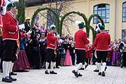 Zeit zum Ordentausch und gegenseitigem Kennenlernen. Da sich ja die Faschingsgesellschaften regelmässig auch auf ihren Veranstaltungen besuchen, war es für viele ein Wiedersehen, für mache ein sehr schnelles sogar, denn viele Bälle gingen in der vorangegangenen Nacht zum Sonntag erst spät zu Ende und der Prinzentreffen Termin auf dem Nockherberg begann schon um 10 Uhr Vormittags. Während der Vorstellung der einzelnen Paare ging ein Faschingshut herum, es wurde für die Flutopfer in Südasien gesammelt und dann auch solange auf der Bühne weitermotiviert, bis mit der Summe von 1.111 € eine den Spendern wohlgefallene Summe zusammenkam. Zeit für einen Prinzenwalzer. Oder besser für 30 Walzerprinzen, denn bei so vielen tanzenden Paaren (2 der Prinzen kamen allein wegen erkrankter Prinzessin) wurde es schnell eng auf der Tanzfläche.... Mit einem Tanz der Schäffler im Biergarten des Wirtshauses endete dann für die meisten der aus Oberbayern angereisten Gruppen dann am frühen Nachmittag das Treffen, mach ein Prinz wird anschliessen wie ein solcher zu Hause ins Bett gefallen sein. Und dabei war dies zurückliegende Wochenende doch nur der heiße Anfang einer kurzen, dafür aber umso intensiveren Faschingssaison 2005. Eine umfangreiche Fotogalerie finden Sie hier, Teil 1, Teil 2, Teil 3, Teil 4. Wir konnten unseren Faschingsplaner durch einige uns noch unbekannte Gruppen etwas ausbauen und bieten dort jetzt Informationen zu über 50 Faschingsgesellschaften bzw. Tanz-Gruppen (weiter) sowie mehr als 300 Termine der laufenden Saison (weiter). Nachdem in den vergangenen Tagen bereits mit den ersten 50 Faschingsveranstaltungen kräftig gefeiert wurde, geht es am Donnerstag (13.01.) mit den nächsten Partys weiter
