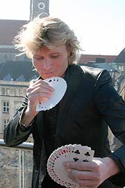 Eben noch auf der Showbühne in Las Vegas und jetzt - schwupp! - auf dem Dach des Bayerischen Hofs. Nein, ausnahmsweise kein Trick, sondern ein ganz regulärer Flug von Amsterdam zum FJS-Airport... Bei einer Begegnung mit Hans Klok an anderer Stelle wird man seinen Augen allerdings nicht trauen: Der smarte Holländer zeigt eine solch rasante Show, bei der das Publikum kaum zum Atem holen, geschweige denn zum Grübeln über „Wie-hat-er-das-bloß-gemacht“ kommt... Im Nebel erscheint der schnellste Magier der Welt: schwarze Hose, weißes Hemd, blonde Fönfrisur („Ich habe den selben Friseur wie Linda de Mol“, lacht Klok). Ganz unspektakulär, doch dann geht‘s los: Nicht einmal eine Sekunde braucht Hans Klok, dann hat er auch schon mit seinem Showgirl Nathalie Plätze getauscht: Wo sie sich eben noch in einer Glaskiste räkelte, sitzt plötzlich der blonde Hans - und Nathalie zeigt ihre langen Beine in voller Pracht. Er schnibbelt Assistentin Nr.2, Debbie, in drei Teile und setzt sie - zum Glück für das schöne Kind - auch wieder zusammen. Glühbirnen schweben, Wasser wird zu Konfetti, eine Zeitung wird wie durch Geisterhand nach dem Zerreißen wieder ein Ganzes, er lässt eine schöne Frau schweben und fliegt selbst in die Luft, um ihr eine Rose zu überreichen. Zauberhaft! Hans verschwindet und taucht Sekunden später mitten im Publikum wieder auf. Dabei strahlt Hans Klok eine Spielfreude aus, die ihresgleichen sucht. Keine tiefen, mystischen Blicke wie beim Kollegen Copperfield, keine weißen Tiger wie bei Siegfried und Roy - Hans Kloks Markenzeichen ist die unglaubliche Geschwindigkeit, mit der er seine Illusionen vorführt. Eine schweißtreibende Angelegenheit - hier benötigt der Hauptdarsteller kein Fitness-Studio mehr... Sechs Monate hat er im letzten Jahr im Mekka des Showbiz gearbeitet. „Auf dem Strip in Las Vegas konkurrieren jeden Abend 140 Shows, da muss man schon was Besonderes zeigen“, so Kloks deutscher Manager Rainer Hackl (Rainer Hackl Entertainment Group). Und das hat Klok getan, alleine 17 Container mit Requisiten liess er nach Vegas bringen und engagierte eine der aufregendsten Frauen der Welt als Assistentin: Baywatch-Nixe Pamela Anderson. „Es war immer mein Traum, einmal in Las Vegas aufzutreten. Wir hatten solch einen großen Erfolg, haben in sechs Monaten 200.000 Tickets verkauft. An einem Abend kamen auch meine Vorbilder Siegfried und Roy in die Vorstellung und applaudierten begeistert“, berichtet der Magier glücklich. Die Zuschauer erlebten eine Show voller Erstaunen und Tempo. „Im MTV-Zeitalter muss alles schnell gehen, wie ein Videoclip, sonst ist es ja langweilig“, erklärt der smarte Holländer. Mit Pamela Anderson verbindet ihn eine dicke Freundschaft. Mehr nicht, obwohl den beiden eine Liaison angedichtet wurde. „Ich bin seit 16 Jahren mit meinem Freund glücklich“, klärt Hans Klok dann auf. Pech gehabt, meine Damen! Fast zwanzig Jahre arbeitet Klok übrigens schon mit seiner Assistentin Zarina zusammen. Sie gibt das „schöne Biest“ in der Show. Und auch hier scheint Klok ein Geheimrezept gefunden zu haben, dass diese Bühnen-Ehe so lange funktioniert. Wir verraten‘s: Der Mann ist durch und durch Kavalier! Ist das magische Team auf Tour, so genügt nur das leise Äußern eines Wunsches, z.B. nach einem Kaffee, und Klok organisiert für seine Damen das heiße Getränk. Geheimnis Nr. 2 ist sicher das Fehlen jeglicher Star-Allüren: Trotz Superstar-Status (in Holland kennt ihn wirklich jedes Kind, Trambahnen halten an, wenn er über die Straße geht und immerhin schauten mehr als 500 Millionen Menschen zu, als Hans den Fußball-WM-Pokal bei der Endrundenauslosung quasi aus dem Nichts hervorzauberte), der Künstler ist mit beiden Beinen auf dem Boden geblieben, hat zu lange für den Erfolg gearbeitet, der mit dem Gastspiel in Las Vegas vorläufig gekrönt wurde. Jetzt will er die Zuschauer in den großen Hallen Deutschlands verzaubern. Wenn Sie ihm begegnen, fragen Sie ihn ruhig nach einem Autogramm oder einem Foto. Für jeden Fan hat er ein freundliches Wort. „Alle diese freundlichen Menschen sind doch meine Publikum, was wäre ich ohne sie?“, ist Kloks Credo. Freuen wir uns also auf eine rasante Show am 11. April 2008 in der Münchner Olympiahalle. Schnallen Sie sich schon mal an... Gaby Hildenbrandt