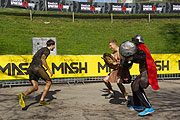 Fairness und Teamarbeit haben beim Reebok Spartan Race München 2015 hohe Priorität, Ausdauer, Kraft, Beweglichkeit, Schnelligkeit, Geschicklichkeit, Balance und Koordination sind gefragt, die Obstacles (=Hindernisse) zu bewältigen. Der amerikanische Sportsender ESPN beschreibt dann auch das Spartan Race als einen "wahren Test des Willen - a true test of will." Das Reebok Spartan Race wurde kürzlich vom Outside Magazine zum Hindernisrennen Nummer 1 gekürt - also nicht swie hin. Bei der Auswahl des Parcours rund um den Olympiaberg haben Streckenbauer den Fokus auf die vorhandenen natürlichen Gegebenheiten gelegt. Hinzu kamen spektakuläre Hindernisse. Der Kurs führte querfeldein, mit natürlichen und künstlichen Hindernissen, rutschigem und widrigem Untergrund, Wasser und man musste hin und wieder ein wenig klettern.Zu überwinden galt es Hindernisse wie „Mud Walk“ oder „Rope Climb" Gemeinsam ankommen ist das Ziel, wie auch immer, auf jeden Fall brüderlich / schwesterlich, denn es gab auch reine Frauenteams und auch einen Jungesellenabschied, bei dem das "Opfer" den Parcours im Anzug angetreten hatte. Bei einem Spartan Race ergeht es den Teilnehmern wie einem Spartaner- er weiss nicht was ihn erwartet. Deshalb gib es auch keinen Streckenplan, und so wartet oft hinter jeder Kurve eine Überraschung. Zu überwinden galt es Hindernisse wie „Mud Walk“, „Rope Climb“ Bevor es dann mit dem "Fire Jump" am Ende ins Ziel geht, hatte man noch den "Slippery Wall", eine 45 Grad Steigung zu erklettern mit glattem Untergrund, an der man sich an einem Stick nach oben ziehen konnte, schmierig war das auf jeden Fall, kamen die Athleten doch gerade frisch schlammbedeckt aus einem andern Hindernis auf dieses Hindernis. Manche Sachen vom Vorjahr wurden entschärft: so ist der "barb wire crawl" bei dem es galt, unter richtigem Stacheldraht einen Hang hinauf und dann wieder hinab zu robben, in ähnlicher Form wieder da, mit grünen Netzen, oáber ohne Spitzen, letztes Jahr hatten sich hier doch etliche Kratzer undmehr geholt an dem Hinderniss. Auch "Object Carry", was in München im Vorjahr zum Beispiel bedeutete, mit einem schweren Reifen über der Schulter das schlammige Ufer hinunter durchs Wasser um einen Baum herum und dann durchs Wasser wieder zurück zu befördern, gab es in 2015 nicht, dafür gab es etliche neue Hindernisse zu überwinden, auf die man nicht unbedingt vorbereitet war. Insgesamt ging es 2015 sehr nass zu, gleich an drei Stellen mussten sich die Spartaner im Rennen dieses Jahr durch das doch recht frisceh Wasser den Olympiasees quälen.... „München war für uns ein toller Auftakt für die Events in Deutschland. Wir kehren daher gerne in den Olympiapark zurück“, freut sich Benjamin Hoehler, Projektleiter Reebok Spartan Race Europe. „Das Areal bietet mit dem Olympiaberg, dem Olympiastadion und dem Olympiasee ein spannendes Spielfeld für ein Reebok Spartan Race. Die zentrale Lage ist zuschauerfreundlich und der Park bietet eine faszinierende Kulisse und wurde sehr gut von den Teilnehmern angenommen. Das Sprintformat lässt sich hier ideal umsetzen. Die Veranstaltung wird für uns im kommenden Frühjahr der Auftakt für die nationalen Rennen in 2015 sein. Daher rechnen wir wieder mit einem großen Teilnehmerfeld.“ Auch bei der Fitnessmarke Reebok, die die Serie seit dem vergangenen Jahr weltweit als Titelsponsor unterstützt, blickt man mit Spannung auf das Jahr 2015. „Wir sind stolz darauf, nach dem erfolgreichen Auftakt in 2014 auch im kommenden Jahr wieder Titelsponsor für die weltweit größte Obstacle Racing-Serie zu sein“, sagt Katja Adrienne Erbe, Brand Director Reebok Central Europe. „München hat für uns dabei einen ganz besonderen Stellenwert, schließlich konnten wir hier die Deutschland-Premiere des Reebok Spartan Race feiern. Wir freuen uns, auch 2015 wieder Tausende Spartaner auf ihrem Weg durch den Olympiapark mit unseren spezifischen Produkten für Obstacle-Racing zu unterstützen. Wer die Helden schon einmal an einem entscheidenden Hindernis beobachten konnte, der erlebt, dass es neben Fitness und spartanischem Willen durchaus auch auf das ‚richtige Material‘ ankommt.“ Bei der zweiten Auflage des Events wird ein SPARTAN SPRINT mit mindestens 5 Kilometern Laufstrecke und mehr als 15 Hindernissen angeboten. Die Schnellsten werden nach 35 Minuten im Ziel erwartet, die letzten Spartaner werden nach ca. 1:30 Stunde erwartet. Die Zeitnehmung erfolgt über Chips- diese wurden vom Veranstalter gestellt. Erster Startblock für den Elite Heat SPARTAN SPRINT ist um 09:00 Uhr. Generell gilt: Bei Spartan Races wird in Wellen gestartet. Diese umfassen zwischen 150-250 Startern und gehen im Abstand von 15 Minuten auf die Strecke. Zeitlicher Ablauf: 7.00 - 14.00 Abholen der Startunterlagen / Registration Anmelden konnte man sich noch auf der Website des Veranstalters www.de.spartanrace.com