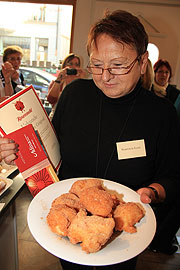 Recht quirlig ging es zu in der Genuss-Werkstatt München (www.genusswerkstatt-muenchen.de) in Haidhausen ums Eck vom Wiener Platz. Angetreten waren hier im Küchenstudio die zehn Finalisten aus allen Regionen Bayerns zum Finale der ersten bayernweiten Meisterschaft der Hobby-Bäcker, um ihre Heimat mit einem Traditionsgebäck zu vertreten. Alle Rezepte, die es ins Finale geschafft hatten, wurden zu „bayerischen Originalen“ gekürt, doch nur eines konnte den Titel des besten bayerischen Gebäcks ergattern: Bayerns beste Hobby-Bäckerin stammt aus Mehring-Öd. Rosemarie Kuntz überzeugte die Jury beim Finale der bayerischen Meisterschaft der Hobby-Bäcker. Mit ihrem Meisterwerk „Reiskiachi“ konnte die 62-jährige Geschäftsführerin eines Importhandels für Früchte aus Mehring-Öd die Jury um Weltmeisterkonditor Manfred Bacher am 18.11.2011 in München überzeugen.