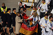 24.02.2014: Deutsche Olympiamannschaft feierte am Flughafen München mit den Fans. Bundespräsident Gauck empfing das Team auf dem Flughafen |