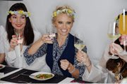 Andalö Midsommar Dinner mit Pamela Anderson am 25.03.2014 im Münchner "Bild und Raum Kochstudio" - mit buntem Blumenkranz im frisch gekürztem Blondhaar kann der Frühling kommen |