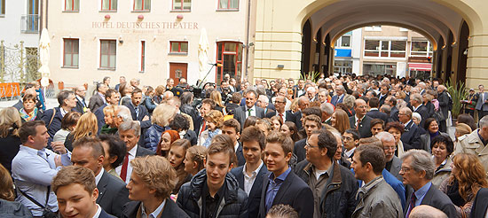"Wir haben nur nicht gedacht, dass das schon so früh anfängt. Deswegen mein Rat dass der Stadtrat NACH der Wahl bedenken möge, was jeder Einzelne VOR der Wahl gesagt hat... das Wichtigste ist Glaubwürdigkeit hieß ein Buch von Erhard Eppler, ich halte es für aktueller den je." Tosender Applaus daraufhin, denn auch ohne es direkt anzusprechen, verstand jeder, dass Alt-Oberbürgermeister Christian Ude hier Kritik am Ende des rot-grünen Rathausbündnisses äusserte, obwohl doch.... "Ich gebe noch ein Versprechen ab, und auch da orientiere ich mich an meinen beiden Vorgängern, ich werde mich altersweise nicht einmischen in die Münchner Stadtpoliitk und werde kein Bürgerbegehren einleiten oder auch nur unterstützen, KOMMA, solange im Rathaus vernünftige Politik gemacht wird" und verspricht "In Zukunft werde ich ein ganz umgänglicher Ruheständler sein".... Zur Auflockerung des Festaktes, der von Amelie Fried moderiert wurde, spielten das Ensemble „Blechschaden", die Münchner Spider Murphy Gang und das Martina-Eisenreich-Quartett in den Pausen zwischen den Reden auf.
