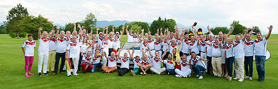 Auch beim Audi Golf Cup im schmucken 18-Loch Golfclub Beuerberg e.V. (www.golfclub-beuerberg.de) zeigte sich - der Fußball beherrscht derzeit alles: Nach dem kleinen Ball auf Fairways und Grüns war nur noch der große im TV wichtig. Vorausschauend hatten Münchens Audi-Chef Martin Lohmann und Turnierleiter Herbert Hubauer für die Teilnehmer 100 deutsche Trikots fertigen lassen die Siegerehrung mit Edel-Dinner wurde zum Freudenfest, das beim 4:0 gegen Portugal selbst der gebürtige Österreicher Michael Hartl mit Deutschland-Mütze feierte. Seine Frau Marianne verriet derweil: „Unser Volksmusik-Ruhestand kann noch warten, wir machen weiter....!“ Das Audi-torium begrüßte u.a. Schauspieler Michael Lesch, Musik-Manager Thomas Stein, Ex-Fußballprofi Jürgen Täuber, Prof. Dr. Marcus Seemann (Diagnoseklinik) und den zweimaligen Snowgolf-Weltmeister Adi Hengstberger, dessen Sieger-Team u.a. die begehrten Driving Experience im Audi R8 auf dem A-1 Ring in Österreich gewann. Veranstalter Martin Lohmann, selbst (noch) kein Golfer: „Ich bin ja immer wieder fasziniert, wie dieser kleine Golfball die Spieler auch noch Stunden nach dem Turnier fasziniert, aber an diesem Abend war Fußball einfach stärker...“ ©Fotos munichpress.de/Guenther Reisp (2), Sabrina Hashemi (1)