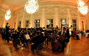 Die Augsburger Symphoniker spielten bis 20.30 Uhr im Kaisersaal und nach der Rede von Ministerpräsident Seehofer im Max-Joseph-Saal Opern- und Walzermelodien.