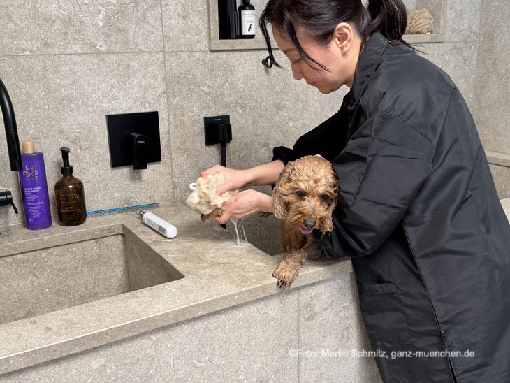 Einmal waschen und fönen bitte. So hieß es ausnahmsweise nicht für die VIP-Ladies, sondern für die VIP-Zamperl. Holly, der Hund von Influencerin Julia Pohl, genoss das luxuriöse Treatment, ebenso wie Kira, der Hund von Jungeon Agnés Prinzessin von Isenburg. „Kira ist ein Maltipoo und wird auch bei uns zu Hause verwöhnt, vor allem von unseren Kindern. Sie weiß genau, in welches Bett sie nicht darf, nämlich in das von meinem Mann und mir“, erzählte sie schmunzelnd. „Den Hundefriseur ist sie schon gewöhnt, denn dort geht sie alle vier bis fünf Wochen hin. Hier gefällt es uns besonders gut, da die Location hier so wunderbar hell ist.“ Influencerin Julia Pohl freute sich mit ihrer Hundedame Holly: „Ein ausgebildeter Therapiehund und gleichzeitig ein Anti-Allergikerhund, ein Doodle, das heißt ein Mix Labrador-Golden Retriever- Pudel-Mix. Sie hat Haare wie wir Menschen, und diese muss man schneiden und pflegen, wie beim Frauchen auch. Fellpflege ist bei uns also sehr wichtig und hier ist sie in sehr guten Händen. Und sie hat sich denke ich genauso auf diesen Termin heute gefreut wie ich mich auf meine Friseurbesuche…“ „Hunde schenken uns jeden Tag bedingungslose Liebe. Eine Wellnessbehandlung ist für mich eine kleine Art, etwas davon zurückzugeben“, so Michaela Aschberger, die mit ihrer französischen Bulldogge Lola kam: „Heute bin ich mal die plus 1“, meinte sie schmunzelnd. Feinkost-Expertin Sunnyi Randlkofer kam ohne Vierbeiner: „Ich habe aber zwei Dackel zu Hause“, erzählte sie. Wie sehr verwöhnt werden die Vierbeiner in ihrer Familie? „Sehr, aber in erster Linie mit Liebe und auch mal mit Leckerlis. Sie bekommen aber Hundefutter und nicht Dallmayr“, betonte sie schmunzelnd. „Ich hatte früher einen Hund, jetzt habe ich einen Leih-Hund, nämlich den Mops meines Sohnes Oskar“, erzählte Wiesnwirtin Petra Reinbold. Sie ist eine eher strenge Leih- Hundemama, wie sie schmunzelnd betonte: „Von mir bekommt er nur Trockenfutter, aber bei meinem Mann Edi und im Franziskaner sieht es anders aus. Da ist es dann mit der Disziplin vorbei“, so die Gastronomin, die von ihrer Nichte Anna Genske begleitet wurde: „Sie ist Hundetrainerin und hat eine Verhaltensberatung für Hunde hier in München und ist somit die perfekte Begleiterin für heute.“ „Pintu“-Gründerin Sophia-Margaritha Schiebel begrüßte die Gäste und gab einen Einblick, was die Fellnasen und deren Besitzer im Store und im Spa erwartet: „Das kuratierte Sortiment reicht von edlen Lederhalsbändern und markanten Schmuckketten bis hin zu luxuriösen Betten und Decken aus handgewebten Stoffen. „Pintu“ steht dabei für zeitloses Design, hochwertige Materialien und elegante Zurückhaltung sowie für Nachhaltigkeit, denn der Fokus liegt auf umweltfreundlichen Materialien. Jedes Stück vereint dabei Ästhetik und Funktion und überzeugt durch Langlebigkeit, Stil und eine klare Designhandschrift“, so Sophia-Margaritha Schiebel, weiter. „Verwendet werden Materialien wie feines, pflanzlich gegerbtes Leder, massive Beschläge aus Messing oder Edelstahl sowie handgewebte Stoffe.“ Seine Wurzeln hat „Pintu“ in Wien, wo sie das Label im Jahr 2023 gründete, dort ist auch der österreichische Flagship Store beheimatet. Wie kam sie auf die Idee, ein solches Design-Paradies für Hunde zu kreieren?