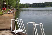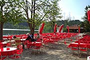 Wenn die Münchner vom "Kastensee" sprechen, verkürzen sie nur den eigentlichen Namen. "Kastenseeoner See" heißt er voll ausgeschrieben. Am 300 x 400 m breiten Moorsee bei Glonn im Südosten Münchens, gar nicht einmal so weit entfernt vom Steinsee, beginnt die Badesaison Ende Mai. Auch der Kastensee liegt in einem Naturschutzgebiet, auf dem sogenannten "Schwingmoor" auf der anderen Seite des eingezäunten Badeareals wachsen noch viele seltene Pflanzen. Zum Baden geht es über den Eingang am Strandcafé Kastenseeon. gegenüber gibt es reichlich Parkplätze, viele davon unter Schatten spendenden Bäumen. Im Sommer, wenn es voll wird (bis zu 2.500 Badegäste am Tag), parkt der Rest auf der Wiese. Sie betreten das Bad durch den Eingang am Strandcafé, das mit einigen Schatten spendenden Bäumen ist sehr beliebt ist: hier kann man am Ufer den Fischen im Wasser zuschauen, die erwartungsvoll der kleinen Happen lauern, die ihnen die Gäste zuwerfen. Ganz schön fett können hier die Karpfen werden, die im Moorwasser hervorragend gedeihen. Auf dem Ufergelände liegen entweder im Schatten unter hohen Bäumen, im hinteren Teil weitet sich die Liegefläche zu einer Wiese, die voll in der Sonne liegt. An manchen Stellen ist dort das Gras noch recht feucht am Morgen, man merkt das Moor nebenan. Doch wenn die Sonne lange genug scheint, ist alles trocken. Alternativ bietet sich im vorderen Bereich des Bades auch ein langes Sonnendeck in Form von Liegebrettern an. - Wasserqualität: Sehr Gut - Eintritt (2022): Tipp in der Nähe: Wiesmühle: ein beliebtes Familienbad am südlichen Ortsrand von Glonn, Reisenthalstr. 13. Gepflegte Liegewiesen, saubere Badekabinen. Bewirtung im zugehörigen Gasthof mit Kiosk und schönem, schattigen Biergarten. Ideal für Familien mit Kindern. Wegbeschreibung: - Auto: über Putzbrunn und Egmating Richtung Glonn, dann den Schildern folgen MVV/Rad: S1 - Haltestelle Neubierg - von dort aus per Bus inRichtung Glonn - Parken: Der bewachte Parkplatz kostet für Autos 2,50 Euro, ab 17.30 Uhr 1,50€ Strandcafé Kastenseeon - Otto Lamm GmbH - 85625 Glonn |