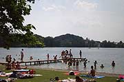 Der Weßlinger See liegt landschaftlich sehr reizvoll mitten in der kleinen Gemeinde Weßling. Der moorige Braunwassersee, fast nicht mehr geheimer "Geheimtipp" der Münchner und Nahausflügler, ist der kleinste und am weitesten nördlich gelegene See des Fünfseenlandes. Am Nordufer findet des Weßlinger Sees befindet sich ein kleiner Wiesenstreifen ("Freibad"), der im Sommer von Badegästen überfüllt ist. Versuche, die Wasserqualität des vom umkippen bedrohten bis zu 12 m tiefen Sees zu verbessern, erregten Anfangs der 90er Jahre in weiten Kreisen Aufsehen. Eine 160.000 Mark teure "Tiefenwasserbelüftungsanlage" wurde seinerzeit im See versenkt und drückt täglich 120 Kilogramm Sauerstoff in die tieferen Wasserschichten. Dadurch soll die Oberfläche des Schlammes auf dem Seegrund verdichtet werden, so dass Phosphate, die das Wachstum der Algen fördern, nicht wieder in den Wasserkreislauf gelangen. Heute bietet der See wieder ungetrübten Badespaß in idyllischer Lage. Der Weßlinger See wurde dadurch wieder ein lohnendes Erholungs- und Badegewaesser. Hechte, Karpfen oder Waller wurden wieder im See heimisch. Aber auch ein Spaziergang lohnt sich: eine Umrundung des Sees zu Fuß ist in ca. 1 Stunde möglich Verkehrsmäßig ist Weßling gut erschlossen: einmal durch die Anbindung an die Bahnstrecke München - Herrsching (S-Bahn-Haltestelle) und zum anderen durch die A 96, die in Ortsnähe vorbeiführt. - Wasserqualität: wieder Gut - Kiosk, Gaststätten und Biergärten in der Nähe Freizeitangebot: MS - Zum Haupttext Badeseen in und rund um München (mehr) |