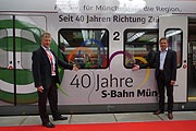 Damals wie heute schätzen die Fahrgäste die Vorteile dieser Innenstadtverbindung. Mit fast jeder S-Bahn- Linie wird der Marienplatz erreicht. Viele Bauträger, die im Umland Immobilien anbieten, erwähnen diesen Vorteil in ihren Verkaufsanzeigen. Bevor es soweit war, gab es für eine Fahrt aus dem Umland in die Landeshauptstadt nur die Vorortbahnen. Wenn ein Pendler dann weiter zum Marienplatz wollte, musste er noch eine zusätzliche Fahrkarte für die Straßenbahn kaufen. Mit der Gründung des Münchner Verkehrs- und Tarifverbundes (MVV), ebenfalls zum 28. Mai 1972, brauchte der Fahrgast für die erwähnte Fahrt nur noch eine Fahrkarte. Die Taktfolge hat sich mit dem Übergang von der Vorortbahn zur S-Bahn ebenfalls deutlich geändert. Bei vielen Strecken ist aus einem 60- ein 20-Minuten-Takt geworden. Seit Dezember 2004 gibt es auf einigen Linien in der Hauptverkehrszeit bereits einen 10-Minuten-Takt. Eine Entwicklung, die so nicht vorherzusehen war. „40 Jahre S-Bahn München“ soll für die Bevölkerung der Region München auch ein Grund zum Feiern sein. Für die Feier standen der Bahnsteig an Gleis 16/17 des Hauptbahnhofs und acht S-Bahn-Fahrzeuge zur Verfügung. „Stars“ unter den Zügen waren die erste Münchner S-Bahn von 1972 mit der Baureihennummer ET 420 001 sowie eine moderne S-Bahn der Baureihe ET 423 in einem speziellen Design zum 40-jährigen Jubiläum. Diese beiden Fahrzeuge wurden zum Veranstaltungsbeginn um 15 Uhr enthüllt. In den Zügen gab es eine Ausstellung zur Geschichte der S-Bahn München und Infostände von Partnern der Jubilarin. Im „Kinderzug“ wurden Spaß und Spiel mit Kinderschminken, Basteln, Malen und Fotos mit der DB-Kinderfigur Olli angeboten. Auf dem Bahnsteig fand ein Jahrmarkt mit Trommlern, Jubiläums-Lebkuchen und Tombola statt. Der Erlös fließt an die Initiative „horizont e.V.“, die sich um obdachlose Kinder und deren Mütter kümmert. Auf der Bühne gab es neben einem kleinen Talk mit der S-Bahn-Geschäftsleitung Musik, Zauberei und andere Unterhaltung. Zum Ende der Feier bestand die Möglichkeit, ab ca. 19.30 Uhr direkt von Gleis 16/17 kostenlos auf folgenden Linien mit S-Bahnen nach Hause zu fahren: S2 nach Erding, S3 nach Holzkirchen, S4 nach Ebersberg und S8 zum Flughafen. Die Züge fuhren nicht durch den Stammstreckentunnel und hielten deshalb erstmals am Ostbahnhof; auch die Stationen Leuchtenbergring, Berg am Laim, St. Martin-Straße und Giesing konnten nicht angefahren werden. Danach hielten die S-Bahnen aber an jeder Station. In den Zügen gab es zum Ausklang des Festes ein kleines Unterhaltungsprogramm. |