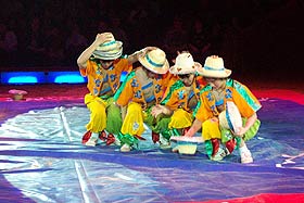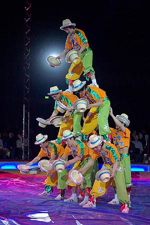Die "Schau der hüpfenden Hüte" der chinesischen Heilongtschiang-Truppe. Zu sehen im 1. Winterprogrammes im Münchner Circus Krone bis Ende Januar 2004 |