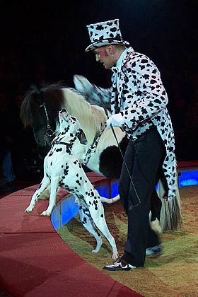 Mister Dalmatin und seine Hunde und Ponys. Zu sehen im 1. Winterprogrammes im Münchner Circus Krone bis Ende Januar 2004 |