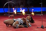 ![]() Die Welt des Humors von "Francesco" ![]() Sergey Sabalotny zeigt die Kunst des Jonglierens ![]() Die Farellos überzeugen mit ihren Einrädern ![]() Martin Lacy mit seinen Löwen ![]() Jana Shanikova mit ihrer Pferdekomödie ![]() James Puydebois (unten) und Colonel Joe ![]() „Ndux Malax“: afrikanischer Folklore, Limbotanz, Feuershow und Akrobatik ![]() Rola Rola mit dem Trio Gaspar ©alle Fotos: Martin Schmitz  |