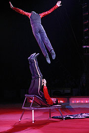Anastasini Brothers: 13 und 21 Jahre alt sind die beiden Nachwuchs-Ikarier Fabio und Giuliano Anastasini und beherrschen doch ihr Metier bereits perfekt. Aus dem Salto in den Salto, lautet das Motto. Mit unzähligen Drehungen und Wendungen, Pirouetten und Kaskaden sorgen sie für den ganz großen Applaus. Ihre Spezialität aber ist das Starten und Landen Fuß auf Fuß, einmalig und neu. Sensationeller Höhepunkt der Show ist eine Kaskade von 15 Salti in Folge, sicher gestanden und gefangen mit verblüffender Präzision. Zählen Sie mit..