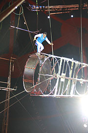 Ein weiterer Künstler, der dem Publikum durch seine artistischen Leistungen feuchte Hände bereiten wird, ist der Kolumbianer Crazy Wilson: Auf, über und unter dem so genannten rotierendem „Todesrad“ wird Wilson für Hochspannung und Adrenalin pur sorgen. Crazy Wilson bietet tollkühne Stunts am Todesrad Staunen Sie mit, wenn Crazy Wilson ungesichert auf dem Todesrad mit dem Entsetzen der Besucher spielt. Auf, über und unter dem rotierenden Riesenrad fliegt er um die eigene Achse, dreht Loopings, schlägt Salti. Immer höher, schneller weiter. Bei seinen halsbrecherischen Stunts fiebert sogar die Manege mit. Da macht wohl sein Schutzengel täglich Überstunden...