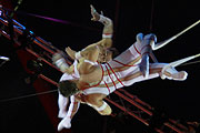 Die Truppe Dalian vom großen Chinesischen Staatscircus zeigt Haushohe Sprünge von der Duplex-Schaukel. Sie gehören zu den mutigsten Artisten der Welt und brachten hiermit wieder einmal eine artistische Star-Attraktion nach Deutschland. Atemberaubende ist die Artistik an der Duplex-Schaukel. Gezeigt werden in temperamentvollen Gruppenbildern haushohe Sprünge, die halsbrecherischen Stunts gleichkommen, bei denen es um Milli-Sekunden und Millimeter geht, wenn die Artisten bei der Landung in weiche Tücher abtauchen und zur Erde rutschen. Perfektes Timing und überragende Reflexe zeichnen die Schaukel-Recken aus, die mit ihren Salti höher in die Circuskuppel vorstoßen als jede andere Gruppe zuvor, und halten das Publikum von der ersten bis zur letzten Minute in Atem.