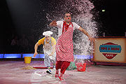 FIPS & BEAU (England) begeistern mit britischem Humor at its best. Sie setzen die halbe Manege unter Wasser, üben sich im Rasierschaum-Weitwurf und tragen ein heroisches Kochlöffel-Duell aus.