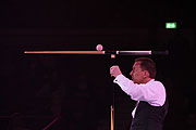 TATJANA KONOBAS (Ukraine) beweist, daß man mit Bällen nicht nur jonglieren kann. Ihre Welt ist rund, blau und immer in Bewegung. In einem dynamischen Duett aus Akrobatik und Tanz, verbindet sie Artistik, Antipoden, Balance und Jonglage zu einer verblüffenden Einheit und gefällt in einem Auftritt der Perfektion.