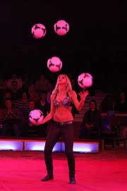 Seit ihrem 11.Lebensjahr trainiert die Schönheit aus Prag an ihrem Handspiel und drehte dabei so manches runde Ding. Bekannt aus der Casting-Show „Das Supertalent 2011“, wo sie Dieter Bohlen zeigte, wie Frauen mit Bällen umgehen können. Applaus für eine ideenreiche Show „rund ums bunte Leder“. (Erstmals in München). |