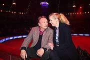 In der Manege erleben könenn die Besucher der Vorstellung nun eine Dressurschule der ganz besonderen Art. Unter Ausnutzung ihres Spieltriebes dürfen die Tierkinder täglich in die Raubtierschule gehen und etwas Neues erlernen. In bekannt einfühlsamer Weise zeigt Martin Lacey die ersten Schritte der zukünftigen Superstars im Scheinwerferlicht. Freuen kann man sich in der Weltpremiere des Goldenen Clown-Gewinners auf den Charme des Imperfekten und eine tolle Multimediashow rund um die weißen Löwenkinder. Bei der Februar-Premiere hatte übrigens Schauspieler Heino Ferch (u.a. "Hotel Adlon") das auch für ihn überraschende Privileg, noch einmal zu seinem weißen Junglöwen "Ocean" in die vergitterte Manege zu steigen und diesen zu streicheln und zu füttern. - Martin Lacey jr. präsentiert 6 Babylöwen im 2. Winterprogramm 2013 @ Circus Krone (mehr) |