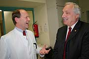 ![]() Mit gutem Beispiel voran: William Hetzler (re.) überreichte am 8.5.2007 einen Scheck für die Kinderambulanz an Professor Dr. Dietrich von Schweinitz, Leiter der Kinderchirurgischen Klinik ![]() Erfahrungsaustausch ![]() Die Kinderambulanz der von Haunersche Kinderklinik benötigt Ihre Spenden! ![]() kleiner Operationssaal in der Kinder-Ambulanz ![]() Behandlungsraum ©Fotos: Martin Schmitz |