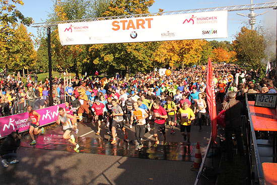 Im Rahmen des 28. MÜNCHEN MARATHON werden heuer auch die Deutschen Marathonmeisterschaften des Deutschen Leichtathletikverbandes (DLV) ausgetragen. Auftakt ist bereits am Freitag dem 11. Oktober mit Beginn der Startnummernausgabe und der Eröffnung der Marathonmesse in der Event-Arena im Olympiapark. Am Samstag, 12. Oktober wurde um 10.30 Uhr der Trachtenlauf des MÜNCHEN MARATHON im Olympiapark gestartet, zu dem sich mehrere hundert Teilnehmer angemeldet haben. Der Startschuss zum MÜNCHEN MARATHON fiel am Sonntag, 13. Oktober, um 10 Uhr an der Ackermannstraße. Auch dieses Jahr kamen am 13.10.2013 die Feldmochinger Böllerschützen ihre historischen Startpistolen und gaben damit den Startschuss für Tausende von Läufern geben. Dies ist nicht nur für die Läufer sondern auch für die Zuschauer ein spannendes Ereignis. Den ersten Platz im Halbmarathon belegte bei den Männern Sören Kah