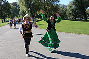 Fotogalerie Trachtenlauf 2018, Teil 1, 2, 3, 4, 5, 6, 7, 8, 9, 10, 11, 12, 13, 14, 15, 16, 17, (©Fotos:Martin Schmitz) Zum 9. Mal bildet das Kult-Event am Samstag den ersten Höhepunkt des MÜNCHEN MARATHON Wochenendes. Am Start des Trachtenlaufs gibt es allerlei folkloristisches Gewand zu bewundern. Darunter hunderte bayerische Dirndl und Lederhosen. Aber auch badische Trachten, osteuropäische Folklore-Kleider und arabische Scheichs-Gewänder konnten in de Vergangenheit auf dem drei Kilometer langen Rundkurs durch den Olympiapark bewundert werden. Pünktlich um 10.30 Uhr erfolgt der Startschuss in der Arena der Olympiahalle auf die gemütlichen drei Kilometer. Natürlich brachte sich auch das MÜNCHEN MARATHON Maskottchen Joggl sportlich ein und lief die ersten Meter mit. Im Ziel wurden die Läufer von Bayerischer Blasmusik und Veranstalter Gernot Weigl empfangen. „Der Trachtenlauf ist die ideale Gelegenheit um mit dem Trachtenverein, der Familie, den Freunden oder Kollegen ganz gemütlich durch den Olympiapark zu joggen“, beschreibt Gernot Weigl, Veranstalter des GMM 2018, den Charakter des nicht ganz ernst gemeinten Wettbewerbs. Nach dem Lauf könnenn sich die Athleten beim wohlverdienten Weißwurstfrühstück stärken. Das Ganze erfolgt ohne Zeitmessung und nur zum Spaß an der Freude. Joggend durch den Olympiapark: Das ist die ideale Gelegenheit, um ein unvergessliches Erlebnis mit Freunden, Bekannten oder der eigenen Familie zu teilen. Jedes Jahr zeigen sich die Sportler besonders sehr kreativ und setzten in puncto Kostüm außergewöhnliche Akzente. Sportanzüge jedweder Disziplin treffen auf klassische Trachtenelemente, neonfarbene Laufschuhe wurden jüngst mit Lederhosen und Dirndl kombiniert. Eigene Interpretationen des Verkleidens dominieren das bunte Teilnehmerfeld. Der Start erfolgt um 10:30 Uhr in der Arena der Olympiahalle. Die Startnummern für den Lauf wurden ab 09:00 Uhr auf der Sportmesse ausgegeben. Natürlich bringt sich auch das MÜNCHEN MARATHON Maskottchen Joggl Der Lauf findet jedes Jahr ohne Zeitnahme statt. Ob Start, Strecke oder Ziel die Trachtenläufer bieten nicht nur den Zuschauern, sondern auch den Fotografen ein amüsantes Bild am Samstagvormittag. Nach dem Lauf besteht die Möglichkeit sich bei einem zünftigen Weißwurstfrühstück mit Brez’n und Weißbier verlorene Kalorien aufzutanken und näher über das eigene Brauchtum auszutauschen. Fotogalerie Trachtenlauf 2018, Teil 1, 2, 3, 4, 5, 6, 7, 8, 9, 10, 11, 12, 13, 14, 15, 16, 17, (©Fotos:Martin Schmitz)