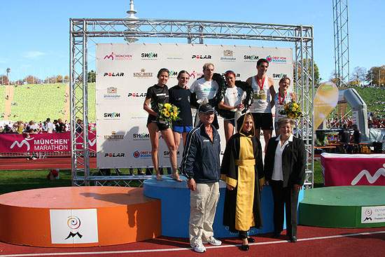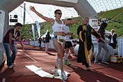 Beim Marathon der Frauen belegte ebenfalls ein MÜNCHEN HERO den ersten Platz: Die Münchnerin Melanie Hohenester vom TriTeam PSV Uni BW München siegte überlegen in 2:49:19 Stunden. Auch sie setzte ihre Siegesserie fort. Sie war bereits die schnellste Frau im Triathlon. Mit 4:58:05 Stunden (Marathon plus Triathlon) holte sie sich die 20.000 Euro, die für die MÜNCHEN HERO Frau unter fünf Stunden bereit standen. Zweite wurde Bianca Meyer von der www.runningcompany.de in 2:56:23 h und Laura Ursella von Atletica Buja-Treppo Grande in 2:56:53 Stunden Nettozeit. Zuvor schon kamen die Teilnehmer des 10km Laufes ins Ziel: Den 10-km-Lauf der Stadtwerke München dominierte der Münchner Sebastian Hallmann von der LG Stadtwerke München in einer neuen Strecken-Rekordzeit von 30:09 Minuten vor dem Zweitplatzierten Tobias Schreindl (TV Hauzenberg, 31:57). Als Dritter überquerte Johann Hopfner (LLC Marathon Regensburg) in 32:27 die Ziellinie. Bei den Frauen siegte Julia Weniger (TG Viktoria Augsburg) in 39:17 Minuten vor Petra Stöckmann TG (Viktoria Augsburg) (39:29). Als Dritte lief Kristina Brandl in 40:47 Minuten ins Ziel.