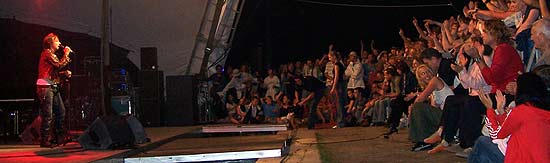 Sommer, Urlaubszeit und der BUGA-See was lag näher als den Süden nach Deutschland bringen? Die HypoVereinsbank holte am Freitag, den 19.08.2005 die Primadonna des italienischen Rocks, Gianna Nannini auf die HVB Seebühne. Sie brachte ab 20 Uhr ein bißchen Sommer in das verregnete München, und kaum war das Konzert verstrichen, ging es nach einem warmen Abend ab 22 uhr mit Regengüssen und Temperatureinbrüchen weiter, die eigentlich schon für 17 Uhr prognostiziert waren... Die schlechte Wetterprognose war wohl auch mit ein Grund dafür, daß trotz hoher Erwartungen seitens der Veranstalter die Gastronomen unzureichend auf den Ansturm vorbereitet waren. Dies führte zu langen Schlangen und im Laufe des Abends dann zu teils ausverkauften Gastro-Ständen. Die Gastronomen hatten wettermässig eher auf 8.000 Gäste getippt und lagen nun 12.000 daneben. Denn die Musikerin, die seit langem für die italienische Musikszene steht, sorgte hier vor über zwanzigtausend Fans ordentlich für Stimmung, die sich teilweise schon um 14 Uhr für gute Plätze angestellt hatten und mit Picknickdecken gut ausgestattet am Seeufer mitfeierten. Gut, wer sich vorher schon eingedeckt hatte mit Verpflegung, siehe oben. Ihre Stimme, kraftvoll und leicht krächzend, ist Gianna Nanninis unverkennbares Markenzeichen. Die musikalische Bandbreite der Sängerin reicht von italienischen Volksliedern und Balladen bis hin zu Rocksongs. Gianna Nannini, momentan mit ihrem aktuellen Album "Perle" auf Tour, präsentierte am buga-See aber nicht nur ihre neuesten Hits. Wir haben vom Konzert für sie eine Fotogalerie, Teil 1, 2, 3, 4. Den ganzen Tag über gab es zuvor schon Programm, denn die HVB Seebühne und ihre Umgebung verwandelten sich für die Veranstaltung in eine italienische Stadt: Strassencafés an der Seemeile, italienische Strassenmusikanten, venezianische Gondeln und mehr holten südliches Flair für Daheimgebliebene auf die BUGA! Für die Veranstaltung gab es keinen zusätzlichen Eintritt, der Konzertpreis war im BUGA-Eintritt inbegriffen. Gianna Nannini (* 14. Juni 1956 in Siena), ist eine italienische Liedermacherin und Rocksängerin, die auch im deutschsprachigen Raum Popularität erreicht hat. Von den Italienern liebevoll "La Giannissima" genannt, hat sie schon auf ihrem letzten, eher elektronisch orientierten Album "Aria" musikalisch neue Wege eingeschlagen. Ihre grandiose Stimme setzt sich auch ganz ohne Instrumentierung durch. Für ihr neues Album "Perle" mit dem sie momentan auf Tour ist, konzentriert sie sich auf ihr Piano und die Musiker des "Solis String Quartett" aus Neapel. Mit dem Album "Perle" hat sie 14 ihrer Lieblingssongs, Hits wie "Profumo", "California" oder "I Maschi" und fast vergessene Lieder wie "Oh Marinaio", "Contaminata" und "Una Luce", aber auch den Titelsong "Aria" aus dem letzten Studioalbum neu umgesetzt. Gianna Nannini ist in ihrem Geburtsort in der Toskana als Tochter einer wohlhabenden und traditionsreichen Konditorfamilie großgeworden. Der Rennfahrer Alessandro Nannini ist ihr Bruder. Nach dem Abitur in Bologna verließ sie mit 18 Jahren das Elternhaus und studierte zunächst Klavier in Turin und im Anschluß daran Komposition in Mailand. Ihre Texte und Lieder wenden sich voll Bitterkeit und Wut gegen tradierte Wert- und Moralvorstellungen. 1981 schrieb sie die Filmmusik für den Film Sconcerto Rock und sang darin das Titellied Ora. Auf ihrem Album G. N. (1981) experimentierte sie mit elektronischer Musik und landete mit dem Titel Occhi Aperti ihren ersten Hit. Das Album Latin Lover (1982) erarbeitete sie zusammen mit dem Produzenten Conny Plank. Es wurde bis dato ihr größter Erfolg. Mit dem Titel Fotoromanza aus dem Album Puzzle (1984) stand sie in Italien drei Monate auf Platz eins, was ihr als erste Frau in Italien eine goldene Schallplatte einbrachte. 1986 produzierte sie mit dem deutschen Produzenten Armand Volker die Single I Maschi, mit welcher sie Italien auf dem 18. World Popular Song Festival in Tokio vertrat. Dieses Lied wurde ihr bis dahin größter Erfolg. 1990 produzierte sie zusammen mit Edoardo Bennato zur Fußball- Weltmeisterschaft in Italien, den Hit Un Estate Italiana. Die HypoVereinsbank ist Partner der Bundesgartenschau. Mit abwechslungsreichem Programm auf der HVB Seebühne hat die Bank es geschafft, nicht nur klassischer Sponsor zu sein, sondern auf der BUGA den ganzen Sommer über Kultur-Highlights zu bieten. Veranstaltungen wie das HVB Kino-Open-Air-Festival oder die Kubanische Nacht mit den "Sons of Cuba" begeisterten bisher Tausende von Gästen. 19.08.2005, 19 Uhr, HVB Seebühne, BUGA |