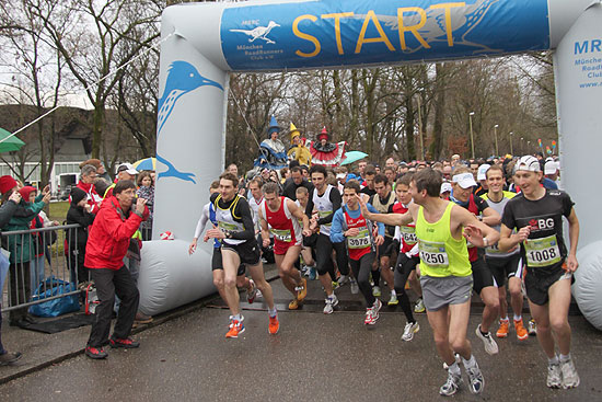 Bevor sie Mama und Papa anfeuern, durften die Kinder auf die Strecke. Um 11:15 Uhr startet der Kinderlauf (0,5 km) und gegen 11:40 Uhr der Schülerlauf über 2 km. Verkürzt wurde die Wartezeit bis zum Start von den Schauspielern des Zebra-Stelzentheaters in ihren bunten Kostümen. Der Volks- und Straßenlauf führte auf dem 10 km Rundkurs durch den Olympiapark. Wo jahraus, jahrein so mancher seine Trainingsrunden dreht, können sich die bis zu 3.000 Läufer von Familie und Freunden anfeuern lassen. Umkleidemöglichkeit finden Sie in der Event Arena, aber leider können keine Duschen geboten werden Auch dieses Mal steht der Münchner Silvesterlauf unter der Schirmherrschaft von Münchens OB Christian Ude. Mit 3.000 Läufern incl. zahlreicher Nachmeldungen und rund 200 Kinder und Jugendliche, die bei Temperaturen etwas über dem Gefrierpunkt auf die Strecke gehen konnten. Anmeldung: Über die Internetadresse www.silvesterlauf-muenchen.de oder www.davengo.com. Strecke: Rundkurs im Olympiapark, der Start und das Ziel sind auf dem Willi-Gebhard-Ufer in Höhe Tram 20/21 Olympiapark West