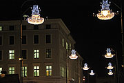 In München ist manchen Privatinitiative überlassen. So auch häufig das "in Stimmung bringen" in der Vorweihnachtszeit. Wähend in Paris Millionen LEDs am Champs Elysees die Stimmung anheizen und das weltweit die Hauptnachrichtensendungen füllt, selbst im warmen Cannes an der Croisette zwischen den Palmen seit Ende Oktober schon der Lichterglanz aufs bevorstehende Fest einstimmt, hat es sich nicht somit städtischer Weihnachtsbeleuchtung auf den Straßen. Auch 2019 wieder ist es wieder soweit, das Brienner Quartier erstrahlt stimmungsvoll im Lichterglanz. 16 funkelnde Kronleuchter tauchen die Brienner Strasse mit je 1000 LED Lichtpunkten zur nahenden Weihnachtszeit in eine festliche Stimmung. Wohl die schönste Weihnachtsbeleuchtung in München. Um Bürgern und Gästen der Innenstadt das Bummeln, Flanieren und Shoppen zu verschönern, erstrahlt in diesem Jahr die Brienner Straße, eine der vier bedeutenden Prachtstraßen Münchens, bis Anfang Januar 2015 in einem besonderen Licht. Vom Odeonsplatz bis zum Platz der Opfer des Nationalsozialismus werden über die golden leuchtenden Kugeln der Straßenlaternen 16 silberne Kronleuchter gesetzt, die mit je 1.000 LED-Lichtpunkten für einen spektakulären Lichterglanz sorgen. So modern die Technik, so sehr wird man sich in die bedeutende Historie der Straße zurückversetzt fühlen, die den einstigen "Fürstenweg" bildete. Viele exklusive Traditionsgeschäfte sind in diesem Viertel ansässig und Bestandteil dieser einzigartigen Kulisse. Finanziert wird diese aufwändige Weihnachtdekoration durch eine Privatinitiative der Eigentümer, Anliger und Mitglieder des Brienner Quartiers. Die stimmungsvolle Weihnachtsaktion in der Brienner Straße soll auch in den nächsten Jahren wiederholt werden. Entwickelt und konzipiert wurde die LichtAktion duch DESEO aus München und erhält aktive Unterstützung duch City Partner München. Geschäfte im Briener Quartier