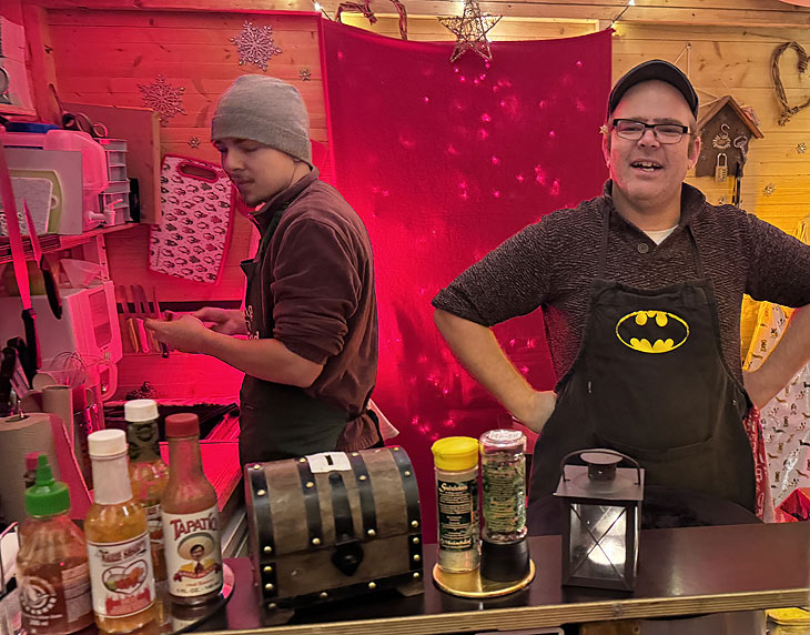 Jeremy Langreuter bietet an seinem Standl kreative Crêpes an von einer Schoko-Banane-Variante bis zum Pizza-Crêpe. Dazu gibt’s keine Weihnachtslieder, sondern Lounge- und Pop-Musik und einen überdachten Bereich mit Stehtischen. Über all dem wachen überdimensionale, bis zu 4 Meter hohe Skulpturen der bekannten Holzschnitzerfamilie Widauer aus Freilassing im Berchtesgadener Land ein echter Hingucker! Die aufwendige Gestaltung des Marktes unterscheidet sich stark vom klassischen Christkindlmarkt und er befindet sich direkt am Viktualienmarkt - ein Markt für Münchner von Münchnern. Montag bis Freitag von 14.00 bis 23 Uhr, Samstag von 12.00-23.00 Uhr und Sonntag von 13.00-22.00 Uhr (hier kriegt man also auch nach späten Bürozeiten noch seinen Glühwein); man spielt Pop, Rock und Classics. Am 24.12. - 26.12.2024 geschlossen Specials: Opening am 14.11.2024, am 6.12. Nikolaus Surprise, am 23.12. dann X.Mas Party und abschließend am 31.12.2024 Silvester-Party Adresse: Viktualienmarkt 15 (beim Pschorr) Internet: www.alpen-wahn.de