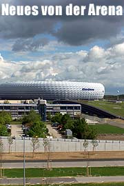 Der Bundesminister für Verkehr, Bau- und Wohnungswesen, Dr. Manfred Stolpe, und Innenminister Dr. Günther Beckstein eröffneten zusammen mit Oberbürgermeister Christian Ude, Baureferentin Rosemarie Hingerl und der Vorsitzende der Geschäftsführung der MVG, Herbert König am 4. Mai 2005 die fertig gestellten Anlagen. Dazu gehören viele neue Straßen, Brücken, Fuß- und Radwege, neue Autobahnanschlüsse, Rettungswege, Grünanlagen, ein Verkehrsleitsystem und der erweiterte U-Bahnhof Fröttmaning. Baureferentin Rosemarie Hingerl erinnerte in ihrer Begrüssugn der Gäste noch einmal danran, dass das Baureferat, noch ehe das Ergebnis des Bürgerentscheides für das neue Fußballstadion vorlag, mit einem Schreiben des Herrn Oberbürgermeisters vom 15. Oktober 2001 beauftragt wurde, eine Organisationsstruktur zu erarbeiten, die die zügige Fertigstellung des Stadions und der Infrastruktur rechtzeitig zur Weltmeisterschaft 2006 sicherstellt. Knapp 3 1/2 Jahre später steht nicht nur die Allianz Arena, auch die Verkehrsanbindung ist bis auf Restbauarbeiten auf der A9 abgeschlossen. Es gelang, die Komplexen Arbeitsabläufe der vier voneinander unabhängigen Bauherren (die beiden Fußballvereine FC Bayern und 1860 München, die Autobahndirektion Südbayern, die Münchner Stadtwerke und das städtische Baureferat mit seinen Fachressorts U-Bahnbau, Tief- und Gartenbau) termingerecht und kostenbewusst zu steuern. Besser noch, die Bauarbeiten konnten sogar mit einer Kosteneinsparung von rund sieben Millionen Euro geschlossen werden. Alle Bauherren unterstanden einer übergeordneten Instanz, dem so genannten Schnittstellen- und Terminkoordinator. Dieser hatte die Aufgabe die Gesamtmaßnahme zu koordinieren, komplexe Abläufe fachlich und zeitlich richtig zu staffeln sowie die Kommunikation und Abstimmung zwischen den Bauherren zu übernehmen. Mit dieser anspruchsvollen Aufgabe beauftragte die Stadion GmbH gemeinsam mit der Landeshauptstadt München das Büro AS & P, Albert Speer & Partner GmbH. Dem Büro gelang es in zahllosen Besprechungen und Einzelgesprächen fast immer Konflikte terminlicher und fachlicher Art einvernehmlich zwischen den Beteiligten zu lösen. Nur wenige Konflikte, die festgefahren schienen, wurden dem obersten Lenkungsgremium - unter dem Vorsitz von OB Christian Ude und der Vertreter der Fußballvereine zur Entscheidungsfindung vorgetragen. Mit diesem Kontroll- und Entscheidungsgremium wurde sicher gestellt, dass entscheidende Weichenstellungen für das Projekt rechtzeitig in den regelmäßig tagenden Sitzungen vorgenommen werden konnten. 11.000 Parkplätze stehen zur Verfügung, davon 9.800 für die Fußballfans die über ein ausgetüffteltes Leitsystem ereicht werden können (Die 1.200 Stellplätze der Fußballvereine sind separat anfahrbar und liegen teilweise unter dem Stadiongebäude). Das rund 700 Meter lange Parkhaus ist in drei Bereiche gegliedert und verfügt über vier Etagen. Die Besucher können in jedem dieser drei Bereiche sowohl ebenerdig, wie auch über eine höhenversetzte Brücke zufahren - abhängig von der Richtung aus de sie kommen. Die Fahrzeuge, die von der Autobahn A 99 kommen, fahren ebenerdig in die Parkebenen. Fahrzeuge, die aus Richtung Autobahn A 9 afahren, gelangen über eine höher gelegene Fahrbahn mit Brückenzufahrt in die dritte Parkebene. Die Verkehrsströme der beiden Autobahnen werden hierdurch effizient getrennt, was einen besseren Verkehrsfluß ermöglicht. Auch beim Ausfahren werden die Verkehrsstöme geteilt, gelenkt durch das Parkleitsystemmit elektronischen Anzeigetafeln, den so genannten "Portalwegweisern". Dank dieses intelligenten Parkverkehrs-Konzeptes dauert es nur zwei bis zweieinhalb Stunden - so schätzen die Verkehrsplaner - bis alle 11.000 Fahrzeuge das Parkhaus wieder verlassen haben. Sicherheit hat darum auch bei den Straßen Priorität: Eigene freigehaltene Straßen sind nur für Feuerwehr-, Polizei-, Notarzt- und Rettungsfahrzeuge gebaut worden, so daß selbst im dichtesten Stau deren direkte Anfahrt zum neuen Stadion gewährleistet ist. Das neue Stadion der beiden Münchner Bundesligavereine fasst 66.000 Zuschauer und bietet 11.000 Pkw- sowie 350 Bus-Parkplätze. Ein Großteil der Fußballfans wird die U-Bahn benützen. Das Baureferat musste dazu nicht nur den U-Bahnhof Fröttmaning nachrüsten. Der Stadion-Neubau gab auch den Startschuss für den lange geplanten Umbau des Bahnhofs Marienplatz, der schon ohne Belastung durch das Stadion aus allen Nähten platzt: Bis zu 25.000 Fahrgäste drängeln sich dort stündlich auf den Bahnsteigen, es tummeln sich dort 270 Prozent mehr Fahrgäste als bei seiner Eröffnung am 19. Oktober 1971. Im Jahr 2005, so schätzen die Planer, nutzen bis zu 32 400 Menschen pro Stunde die Station. Grund genug, den Bahnhof der U 3 und U 6 zu erweitern und den Weg für S-Bahn-Umsteiger komfortabler zu gestalten. Zwei zusätzliche Tunnel sollen die Bahnsteige auf die doppelte Fläche vergrößern und die Fahrgastströme entflechten. An je elf Stellen werden die alten und neuen Bahnsteigröhren miteinander verbunden. Die Arbeiten direkt unter dem Rathaus zählen zu den aufwändigsten in der Geschichte des Münchner U-Bahn-Baus. Dennoch sind sie zur Fußball-WM 2006 abgeschlossen. Viel Geld wurde für den U-Bahn Ausbau investiert, der erst mit der Erweiterung des wichtigen Knotenpunkts Marienplatz 2006 fertiggestellt sein wird. Vor allem wurde bislang in die "Ertüchtigung" des bestehenden U-Bahnstrecken der U 6 investiert. Eine der ältesten U-Bahnstrecken Münchens, geplant für die 70er Jahre, konnte in den letzten Monaten grundlegend modernisiert werden, auch wenn der U-Bahn Nutzer nur wenig zu sehen bekommt. So wurde die komplette Verkabelung erneuert, Siemens wird noch vor Stadioneröffnung aktuelle Steuerungssoftware fertigstellen, die den Zeittakt verkürzen hilft, schließlich wurde zum 4. Mai auch der Stadionbahnhof Fröttmaning fertiggestellt, der künftig bis zu 21.000 Personen stündl