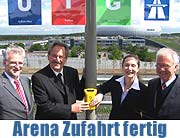 ![]() ![]() Bundesverkehrsminister Manfred Stolpe und Münchens OB Christian Ude: Freigabe der Infrastrukturmaßnahmen per Knopfdruck... ![]() Stadionbahnhof Fröttmaning ![]() ![]() Park & Ride Anlage Fröttmaning ©alle Fotos: Martin Schmitz |
