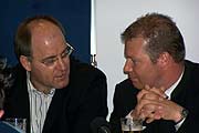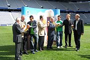 ![]() Hasan Salihamidzic (FCB), Landwirtschaftsminister Josef Miller und Marcel Schäfer (TSV 1860) ![]() Hasan Salihamidzic und Marcel Schäfer ![]() ![]() Geschäftsführer Dr. Peter Kreuzpaintner (Paulaner), FC Bayern Spieler Hasan Salihamidzic, FCB-Vorstand Karl Hopfner und Minister Miller stoßen aufs Bayerische Bier an ![]() 1860-Geschäftsführer Roland Kneißl und Andreas Steinfatt, Geschäftsführer Hacker-Pschorr ©Fotos: Martin Schmitz |