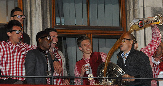 Meisterfeier des FC Bayern München am 10.05.2014 mit der Meisterschale auf dem Rathausbalkon am Marienplatz München |