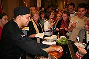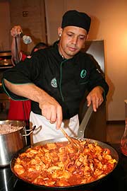 Um die Wartezeit bis zum langersehnten Eröffnungsspiel ein wenig zu verkürzen, lohnte es sich den Gegner Deutschlands genauer zu betrachten. Diese Möglichkeit bekommt man in der Costa Rica Arena, im Forum am Deutschen Museum in München, im Zeitraum vom 24.05. zum Sonntag, 11.06.06. Das kleine Land aus Mittelamerika nutzte das öffentliche Interesse, um sich mit der Costa Rica Arena vorzustellen. Denn Costa Rica (span. für „Reiche Küste“, früher auch „Kostarika“) ist weit mehr als nur eine "Bananen Republik", wenn schon dann eher schon eine "Republik der Banane". Denn die Ticos - so nennen sich die Costaricaner selbst, setzen natürlich auf die Banane, nicht nur die Fußbballer, die am 9.6. um 18 Uhr hiesiger und um 10 Uhr Heimatzeit zum Eröffnungsspiel in der Münchner Fussball Arena antraten und immerhin mit 2 Toren die Deutsche Mannschaft kurzfristig in Bedrängnis brachte, bis die Heimmannschaft dann doch mit 4:2 die Ticos bezwang. 22% der deutschen Bananenexporte stammen aus Costa Rica, erfährt man in der Costa Rica Arena. Umgekehrt geht jede 5. Banane aus Costa Rica über die Häfen Hamburg oder Zeebrügge in deutsche Haushalte. Nicht überall sieht man es sofort, aber achten sie mal auf das Kleingedruckte, die Herkunftsbezeichnung sollte aufgedruckt sein. So stammen viele Bananen von Chiquita oder Dole aus Costa Rica, aber auch unter dem eigenen Label Corbana kann man in Costa Rica erzeugte Bananen kaufen, "The Worlds Best Bananas". Um auch den Münchnern die Banane noch schmackhafter zu machen, besuchten Jorge Sauma Aguilar, C.E.O. Corbana S.A. (dem nationalen Verband der Bananenerzeuger vcn Costa Rica), und Joaquin Gonzalez, Director Corbana S.A., wenige Tage vor dem ersten Spiel ihrer Mannschaft die Costa Rica Arena. Im Forum am Deutschen Museum gelegen ist sie ein geeigneter Ort, Land und Leute kennen zu lernen, hier erhält man Auskunft über ein Land und seine Produkte und Dienstleistungen. Clevere Idee: die besondere Aufmerksamkeit hier in München ist der Costa Rica Arena gewiß. Oder wussten Sie etwa, dass der amerikanische Chip Hersteller Intel im Jahr 1998 eine Fabrik in Costa Rica errichtet hat? Selbst von der Weltbank erntet Costa Rica großes Lob. Im Rahmen der Costa Rica Arena stellen sich viele interessante Unternehmen vor und zeigen eine andere Seite des Landes. Eine aufwendig inszenierte Erlebniswelt mit Regenwaldtunnel, Bilderwelten, tropischen Pflanzen und Filmvorführungen im Eingangsbereich der Costa Rica Arena zeigt auf 500 qm den Besuchern der Costa Rica Arena die Schönheiten des Landes. 18 Firmen aus Costa Rica präsentieren hier in der Costa Rica Arena ihre Produkte, z.B. finden Sie an einem Stand alles rund um die costa-ricanische Banane. Probieren Sie Bananensaft, gerocknete Bananenchips und holen sie sich hier alle Infos, die sie schon immer über die Banane haben wollten. Der Bananenanbau in ausgedehnten Plantagen befindet sich traditionell an der Karibikküste um den Hafen Puerto Limón und neuerdings auch an der Pazifikküste um die Hafenstadt Golfito. Mehr als 50% der Produzenten sind einheimische Betriebe, anders als z.B. in vielen der Nachbarstaaten, in denen bi zu 90% der Betriebe in Besitz der großen meist amerikanischen Bananen-Konzerne sind. Auch Infos zum bekanntermaßen hervorragenden Kaffee aus Costa Rica, zum Tourismus, zu Pflanzen und vielem mehr werden hier geboten. Wussten Sie z.B., das Costa Rica schon vor Jahrzehnten die Armee abgeschafft hat, seitdem neutral ist und die frei gewordenen Mittel seitdem für soziale und ökologische Zwecke verwendet, gleiche welche Regierung zwischenzeitlich am Ruder war? Und mehr als 6% des Staatshaushaltes in die Bildung gesteckt werden? Costa Rica präsentiert sich hier wirklich aus mittelamerikanisches Vorzeigeland. In ihrem Heimatland hoch angesehen ist die Künstlerin Emilia Cersosimo, deren von den Elementen bestimmte Bilder überall in der Ausstellung die Wände zieren und die man hier auch erwerben kann. Die vulkanische Heimat, Regenwälder und Wasser, mit dem das Land zwischen den beiden Ozeanen reichlich gesegnet ist, bestimmen ihre Motive. Zu sehen sind in der Ausstellung außerdem Bilder und Kunstwerke von Manuel Zumbado (Universidad de Costa Rica), und Fotografien des Fotografen Sergio Pucciy. Der Costa Ricanische TV-Starkoch Oscar Castro O´Sullivan verwöhnte nicht nur die Gaumen der Besucher mit nationalen Köstlichkeiten, sondern gab zudem noch am 25. Mai 2006 (Vatertag) ab 15 Uhr eine öffentliche Kochvorführung. "La vaina es asi" heißt in Costra Rica seine Show im Frühstücksfernsehen, auf bayerisch übersetzt heißt das soviel wie "Pack mer's", Lassen wir es uns anpacken... Und es ging ab an der Kochstelle, "Hühnchen auf karibisch", Kokospudding sowie "Rice and Beans" für 8 Personen standen auf dem Platz, mit zweimaliger Liveschaltung direkt aus dem Forum am Deutschen Museum ins Costaricanische Frühstücksfernsehen "Giros de Repretel", welches man auf einem Monitor mit verfolgen konnte. Dort konnte man erfahren, dass Costa Rica in einem Testpiel am Vorabend in Terrassa ein Testspiel gegen eine Katalonien-Auswahl 0:2 (0:1) verloren hatte. Beim Applaus jedenfalls lagen die "Ticos" Fans doch noch eine Nase vorn, angespornt durch den Starkoch, der zwischendurch auch mal ein Tänzchen mit einer Zuschauerin wagte.... - Fotogalerie (Imágenes) Costa Rica Arena - Fotos Auftakt 25.05.2006, Teil 1, Teil 2, Teil 3 Programm: