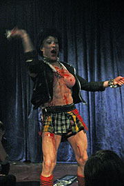 Eine Mischung aus schrill und erotisch burlesque, anziehend und abstossend, was wohl den Reiz ausmacht, ohne das hier zu viel verraten sei. Ob der Crash mit einem Tablett voller Champagnergläser der vollbusigen Blondine zu Beginn beabsichtigt war, oder nur Zufall: "wet" hatte dieses Mal zumindest kein T-Shirt werden können an ihr mangels eines solchen. Armitage Shanks ist einer der bekanntesten Burlesque-Hosts & -Sänger bei The Circus Contraption. Im Stil eines grotesken Zirkusdirektors des 19. Jahrhunderts moderierte und sang Armitage Shanks aus Seatlle, iner der bekanntesten Burlesque-Hosts & -Sänger bei The Circus Contraption, an diesem Abend. ("A voice like honey-coated gravel. He was a sinister and louche presence, who put some sex in the air."- DAN SAVAGE) Der in New York lebende gebürtige Schotte Flambeaux Fire feuerte das Publikum richtig an, der Feuerartist ist für heiße Varieté-Nummern im Stile der 20er Jahre bekannt und hatte für die Geburtstagssause in München mehrere explosive Acts in petto. Flambeaux Fire war u. a. in der „David Letterman Show“, bei MTV und HBO zu sehen, und hält zwei Weltrekorde (www.flambeauxfire.com), einen dafür, mit einer Mundladung entflammbarer Flüssigkeit 25 Feuerstöße zu produzieren, den anderen fürs Feueressen: 55,53 Sekunden hielt er die brennende Flamme im Mund, bevor er sie absetzte. Er war auch Grund für die dringlich wirkende Durchsage, doch bitte endlich das Rauchverbot einzuhalten, da seine Flüssigkeiten leicht entflammbar wären. EDEN wurde von Helmut Newton für die VOGUE abgelichtet und ist aktuell in DJ HELLs jüngstem Musikvideo zu sehen. Die Burlesquekünstlerin versetzt das Publikum mit zwei Burlesque-Acts in Verzückung (www.glam-o-rama.de) Orphelia de Winter aus Hamburg ist ausgebildete Musicalsängerin und eine der wenigen Burlesque-Performerinnen Deutschlands, die die Kunst des Ausziehens mit Gesang kombinieren. „The Singing Burlesque“ moderierte, sang und performte mehrere Burlesque-Nummern (www.myspace.com/orphelia26). Aus New York City dann die sicherlich schrillste Person des Abends: Miss Rose Wood dank ihrer Attacke auf Leonardo Di Caprio wurde die Drag Queen berühmt. Der außergewöhnliche Travestiekünstler brachte das Publikum gleich mit mehreren Showeinlagen in unterschiedlichsten Rollen zum Staunen. Die aus Österreich stammende Berlinerin Lexy Hell ist Deutschlands bekanntestes Tattoo-Model und lief zuletzt für Jean Paul Gaultier an der Paris Fashion Week. Sie zog das Publikum als Conférencière unter dem Titel „Zigarettenmädchen“ in ihren Bann (www.modelmayhem.com/lexyhell) Peter Brownbill aus Dortmund ist Schauspieler und hat u.a. im „Jerry Cotton“-Kinofilm sowie der aktuellen Mediamarkt-Werbung mitgewirkt. Er führte zusammen mit seinem ebenfalls kleinwüchsigen Kollegen Frank mehrere Bühnen- und Walking-Acts auf (www.brownbill.de). Aufgrund des Überwältigenden Erfolgs gibts am Samstag, 26.11.2011 noch eine Zugabe, für diejenigen die am Vortag nicht anwesend sein konnten, und allen anderen die nicht genug bekommen können. Live on Stage the beautiful Miss Rose Wood and Flambeaux from New York City Übrigens: seit November 2011 gibt es in der Paradiso Tanzbar jeden Donnerstag Karaoke mit "Karaoke King"