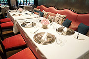 Design im Restaurant Käfer-Schänke Die Idee hinter der Umgestaltung des Restaurants war, den Einheitslook in der Restauranteinrichtung aufzubrechen und durch viele individuelle Details ein Gefühl des Zuhauseseins zu vermitteln. Auch soll sich der Manufakturgedanke der Küche in der Einrichtung widerspiegeln. Einzigartig ist das neue Kunstkonzept, das sorgfältig ausgewählte Werke zeitgenössischer Künstler in den Kontext des Restaurants setzt. Gewählt wurde ein eklektisches Design, das von der Kombination verschiedener Zeiten und Stilrichtungen lebt. Lampen im Retro Look der 50er Jahre findet man ebenso wie in Belgien gefertigte Leuchten aus antikem Silber oder gestrickte Lampenschirme aus dicker Schafwolle aus Italien. Loungekissen sind mit hochwertigen Nubuklederstreifen verziert, Raffrollos aus hochwertigem Leinen und üppige Vorhänge schaffen eine angenehme Gemütlichkeit. Unterschiedliche Formen in Tischen und Stühlen sowie verschiedenfarbige Bezüge unterstreichen den aufgelockerten, entspannten Look. Die dominierenden Farben sind das Käfer Rot und Grau, kombiniert mit einem frischen, silbergrünen Salvia. Innenarchitekt Peter Buchberger hat dafür Lampen, Stoffe und Dekorationselemente in ganz Europa zusammengetragen. Es kamen allein über 30 verschiedene Bezugs- und Dekostoffe zum Einsatz, z.T. von namhaften Herstellern wie Dedar Milano und Dominique Kieffer Paris oder handbestickt von Zimmer + Rhode in Oberursel. Einige Beispiele: Der offene Kamin zwischen Restaurant und Lounge wurde mit einer exklusiven Zinnspachteltechnik verkleidet. Diese moderne, kühle Oberfläche in Verbindung mit dem alten Holzbaldachin und einem einladenden Sofa in kräftigem Pink ist ein Blickfang im Zentrum. In der Opernstube ist es besonders gut gelungen, mit Kunst eine Fortsetzung des Raumes zu schaffen. Die großformatige Fotografie des Nationaltheaters von Candida Höfer korrespondiert förmlich mit der davor platzierten Tafel, an der die roten Sessel die Bestuhlung der Oper aufnehmen und die Spiegelung des klassischen Lüsters Licht auf die Bühne fallen scheinen lässt. Im Restaurant Käfer-Schänke kann man jetzt mit Bibliothek und Trogerstube Wohn- und Esszimmer buchen. Die Bibliothek bietet sich mit einer Büchertapete, schweren Ledersesseln, einem dunkel bezogenen Ecksofa mit üppigen Kissen und rustikalen Holztischen für Aperitif und Digestif in privater Runde an. Die angrenzende Trogerstube ist das stilvolle Esszimmer dazu. Ein außergewöhnliches Blockstreifendesign, das über Holzvertäfelung und Decke bis über die Rollos verläuft, bildet in seiner Geradlinigkeit den Rahmen für ein Spiel mit kräftigem Rot und runden Formen. Das neue Küchenkonzept Der offene Küchenbereich im Zentrum ist eine Mischung aus der heimischen Küche und dem Viktualienmarkt. In geflochtenen Körben in Holzregalen und großen Natursteintrögen sind regionales Obst und Gemüse der Saison üppig dekoriert, frische Kräuter, Öle, Brot und vieles mehr machen Lust, auszuwählen und zu genießen. Dabei setzt Küchendirektor Volker Eisenmann auf ein neues Konzept, das den Gast aus seiner bis dato eher passiven Rolle befreit. Konnte er früher aus einer mehr oder weniger großen Palette an vordefinierten Gerichten wählen, so stehen ihm jetzt viele Möglichkeiten offen: Ausgehend von einem reichhaltigen Angebot an qualitativ herausragenden Basisprodukten sucht er nach Lust und Laune Beilagen und Saucen aus und stellt so sein Menü selbst zusammen. Natürlich assistiert ihm der Service dabei gerne, die Richtung aber bestimmt er. Basis der Küchenphilosophie sind die Produkte an sich. Ob sie aus der Region oder von einem verwunschenen Flecken irgendwo auf der Erde, eines ist ihnen gemein: Sie bestechen durch Qualität. Eine weitere zentrale Rolle spielen die Jahreszeiten. Zubereitet und zeitgemäß interpretiert wird, was gerade draußen wächst unter Einsatz der modernen Gartechniken und mit dem ursprünglichen, unverfälschten Geschmack. Das Chef’s Stüberl Den direkten Zugang in die Küche im wörtlichen Sinn hat der Gast im Chef’s Stüberl, das sich im hinteren Restaurantbereich zur Schumannstraße hin befindet. Dort wurde eine Tür eingebaut, die einen regen Austausch ermöglich. Die Käfer Köche kommen hier direkt an die Tische, beraten die Gäste, informieren sie über die Besonderheiten von Produkten, Manufakturen und Zubereitungsarten, erfüllen individuelle Wünsche, fachsimpeln, nehmen sie mit an den Herd. Genuss wird hier zum kommunikativen Erlebnis in der Interaktion. Inspiration dazu war der Chef’s Table, an dem sich die kreativen Köpfe der Branche zum Austausch treffen, gerne auch einmal in der Küche des Gastgebers. Das Bistro Auch das Bistro im Feinkostladen wurde nach dem neuen Designkonzept umgestaltet, Vorbilder waren hier Pariser und Londoner Bistro Chic. Die mit buntem Geflecht bezogenen Stühle sind eine modische Hommage an den typisch französischen Klassiker, Brasserie Lampen im Industrial Design aus Paris, viel weißes Holz und rote Akzente geben dem Bistro einen unkomplizierten, hellen Charakter. Die neue Fleisch- und Wurstabteilung Lange hat Feinkost Käfer nach einem leidenschaftlichen Metzger gesucht. Mit Florian Achmann wurde er gefunden. Um ein für München einzigartiges Fleischangebot in exklusiven Qualitäten optimal lagern und präsentieren zu können, wurde die Abteilung technisch auf den allerneuesten Stand gebracht, mit neue Beleuchtung und großzügige Vitrinen setzen die Ware in ein optimales Licht. Ein Novum sind der Reiferaum für Fleisch und der Klimaraum für Schinken- und Salamispezialitäten. Im Reiferaum gleich unterhalb der Treppe reift das Fleisch bei exakt 0 °C und 85 % Luftfeuchtigkeit die optimalen Bedingungen für perfekt abgehangenes Produkte. Hier lagert z.B. Fleisch vom Chianina Rind aus der Toskana, der weltweit größten und ältesten Rinderrasse, oder Dry Aged Beef von den Creekstone Farms in den USA sowie Lende von der bayerische Färse. D
