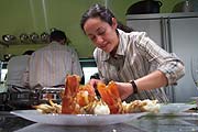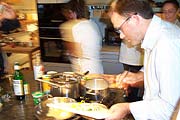 Der bundesweite Kochwettbewerb steht dieses Jahr unter dem Motto "Seafood Creationen". Insgesamt 6 Paare kochten um die Teilnahme am großen Finale am 18. Oktober 2003. Die Gerichte werden von einer Jury unter der Leitung des bekannten und mehrfach ausgezeichneten Kochs Peter Offenhäuser bewertet. Initiiert wurde der Wettbewerb von dem Magazin ELLE bistro und den Unternehmen Küchen Dross & Schaffer, WMF, petit Rungis, KitchenAid, Siemens, Studio Nova, IHR Ideal Home Range sowie Champagne de Saint Gall. Bislang fanden deutschlandweit bereits etwa 38 Regional- und Vorausscheidungen in den Studios von Küchen Dross & Schaffer statt. Die Gewinner des Finales gehen entsprechend dem Motto Erst kochen, dann cruisen auf eine Kreuzfahrt der ganz besonderen Art: Auf der zum exklusiven Kreuzfahrtschiff umgebauten Privatyacht SeaDream werden sie in der Karibik kreuzen und dabei allerlei kulinarische Köstlichkeiten genießen. Der in diesem Jahr erstmals durchgeführte Wettbewerb fand sehr großes Interesse: Zwei Schichten mit je 3 teilnehmenden Paaren trugen jeweils einen Sieger unter sich aus. Die Bewertung war nicht einfach angesichts der kreativen Kochkünste der bis aus Würzburg angereisten Kandidaten, die am 11.09.2003 nach München kamen. Nicole Stich und Oliver Seidl konnten ab 13 Uhr im der ersten Teil des Wettkochens mit ihrem Mediterranen Zanderfilet knapp ihrer Mitbewerber Silvia Eilers & Gabi Godl mit ihrer optisch und von der Präsentation her überzeugenden "Wrapped Sensation" sowie Nicole Bergner und Thierry Roussey mit ihrem köstlichen "Saté-Thunfischfilet mit Korianderweißkohl" auf einen gemeinsamen zweiten Rang verweisen. Im zweiten Teil der Ausscheidung ab 18 Uhr entschied die Jury sich für das "Zander Cordon-Bleu mit Hummernudeln" von Eva Bukszpon und Christoph Hortian aus München. Sonja Becker und Christian Leibold überzeugen mit "Riesengarnelen mit weißem Spargel", der jahreszeitlich bedingt durch Thaispargel substituiert wurde. Delikat auch das Seelachsfilet auf Bärlauchschaum, präsentiert von Anja & Ivica Sop aus Fürstenfeldbruck.. Die jeweils Erstplatzierten können sich nun freuen: am 18. Oktober stehen Sie im Finale um den Cooking Cup 2003 (mehr). Weil alles so schön aussah, haben wir für Sie eine umfangreiche Fotogalerie ins Netz gesetzt, vielleicht machen Ihnen die Bilder ja soviel Spaß, daß Sie sich nächstes Jahr selbst bewerben. Mehr dazu in ELLE Bistro (weiter) Inzwischen geht es in die nächste Saison: Cooking Cup 2004 steht unter dem Motto Italia, amore mio. Die ersten Regionalausscheidung finden in München am 17. Mai 2004 statt. Sie können sich noch anmelden. Schicken Sie dazu ein selbst kreiertes Rezept zum Thema Italien und fügen Sie einen kurzen Lebenslauf und ein Foto bei, gekocht wird übrigens im Team! Bitte beachten Sie, dass das Rezept für vier Personen sein soll und in 1 Stunde zubereitet werden kann. Einsendeschluss für die Teilnahme am COOKING CUP ist der 15.05.2004. Wenn Sie dann Ihr Rezept eingesandt haben, können Sie dann im zweiten Schritt mit etwas Glück in einer von über 20 Städten an der Regionalausscheidung teilnehmen in den Küchen Dross & Schaffer-Küchenstudios. Cooking Cup stellt professionelles Equipment, Sie die Zutaten zu Ihren Kreationen. Unter besten Voraussetzungen kochen Sie sich in das Halbfinale und von dort aus zum Finale in München. Lassen Sie sich von kulinarischen Profis über die Schulter schauen. Charmanter Begleiter des Events ist Gourmet- und TV-Koch Alexander Herrmann. Für zwei bleibt es kein Traum: eine Reise mit der SeaDream Mitkochen lohnt sich. Vor allem für die Sieger: Sie gewinnen eine siebentägige Kreuzfahrt durchs Mittelmeer auf der Luxus-Yacht SeaDream. Doch auch auf die übrigen Teilnehmer warten exklusive Preise aus der Welt des Genießens Alle notwendigen Infos zur Anmeldung etc. finden Sie unter www.cooking-cup.de Cooking Cup Regionalausscheidung München 2005 (mehr) Ort des Geschehen: |